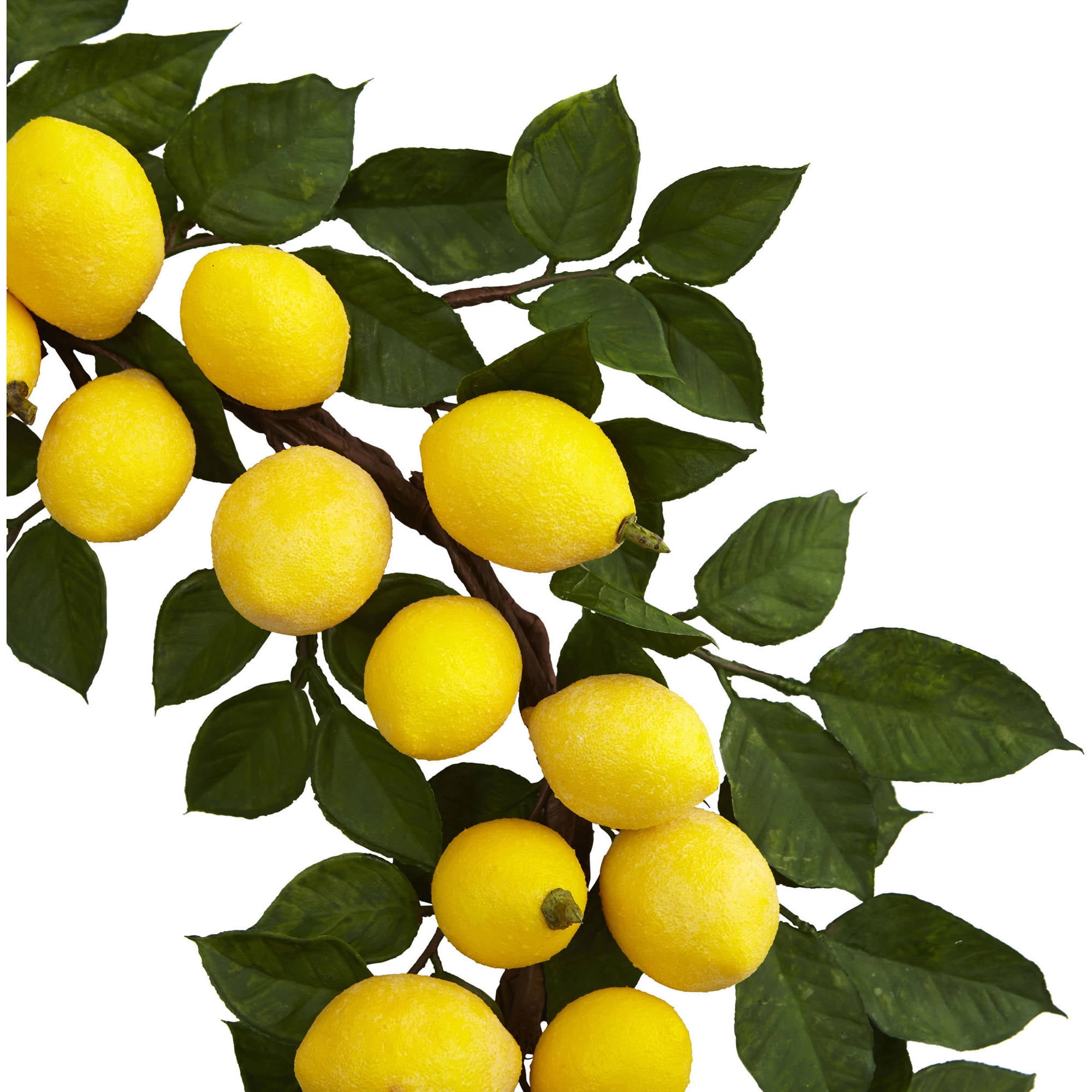 $46.02Nearly Natural Sunny yellow lemons with rich, green leaves embellish this spring and summertime wreath. Handcrafted with artificial materials, this European inspired wreath brings a burst of color to your entryway or fireplace mantel. Pair with decorative burlap and delicate lace for a rustic, farmhouse look. Silk wreaths are manufactured using synthetic materials, such as polyester material or plastic, and are well designed and constructed to be life-like in appearance. This item will need to be re-shaped when removed from the secure box to allow it to reach its fullest size. Your artificial wreath will look beautiful for years to come; simply wipe clean with a soft dry cloth when needed.
