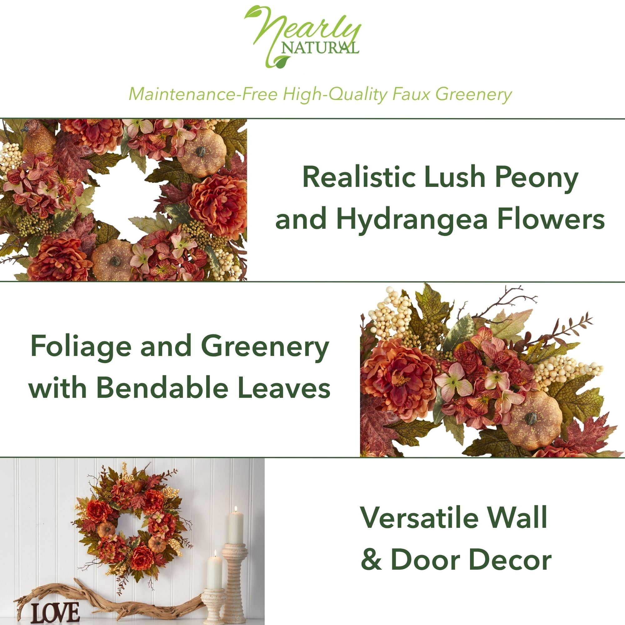 Nearly Natural Artificial Hydrangea Berry Floral Plastic Wreath, 24″ (Assorted Colors)