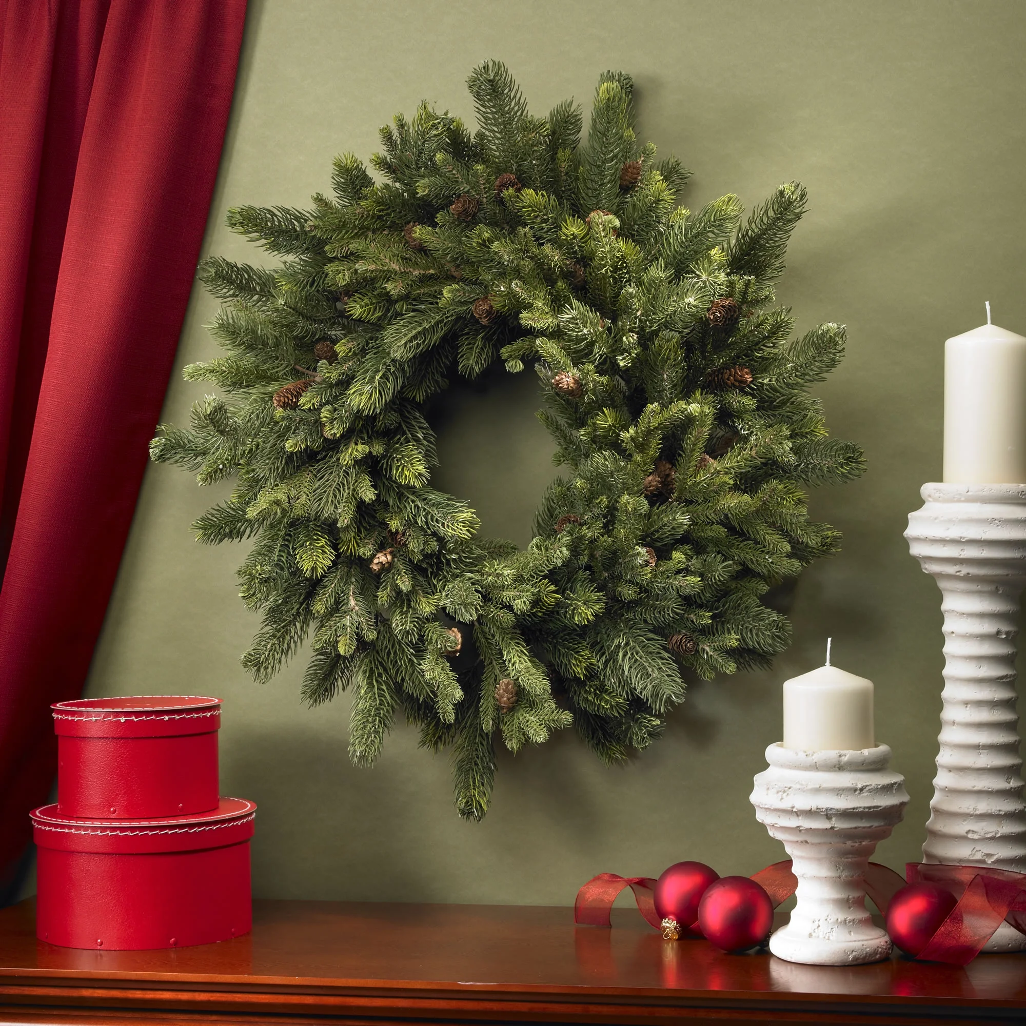 $76.40Nearly Natural Sometimes, the classics are what you want. And this timeless 30” Pine & Pinecone Wreath fits that bill perfectly. With lush, soft needles of varying sizes, twisted into a delicate spiral, and adorned with classic pinecones, this wreath is exactly what every “old time holiday” décor needs. Also makes a great gift for those who enjoy a classic touch to their holiday decorating.