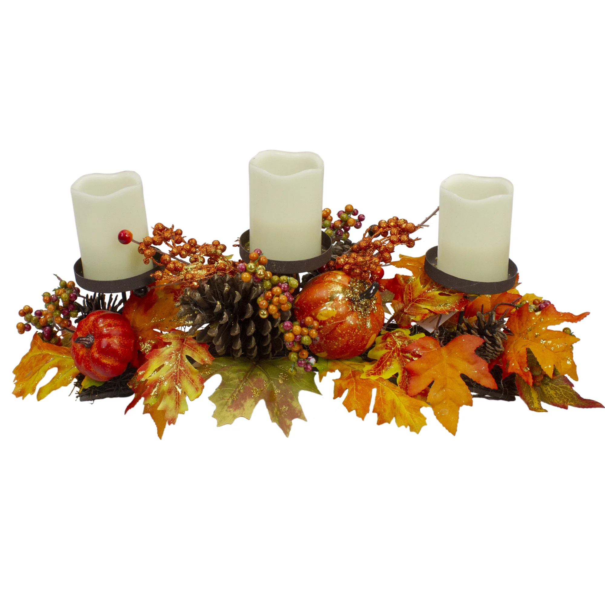 Northlight 21″ Orange Fall Harvest Leaves and Pumpkins Candle Holder