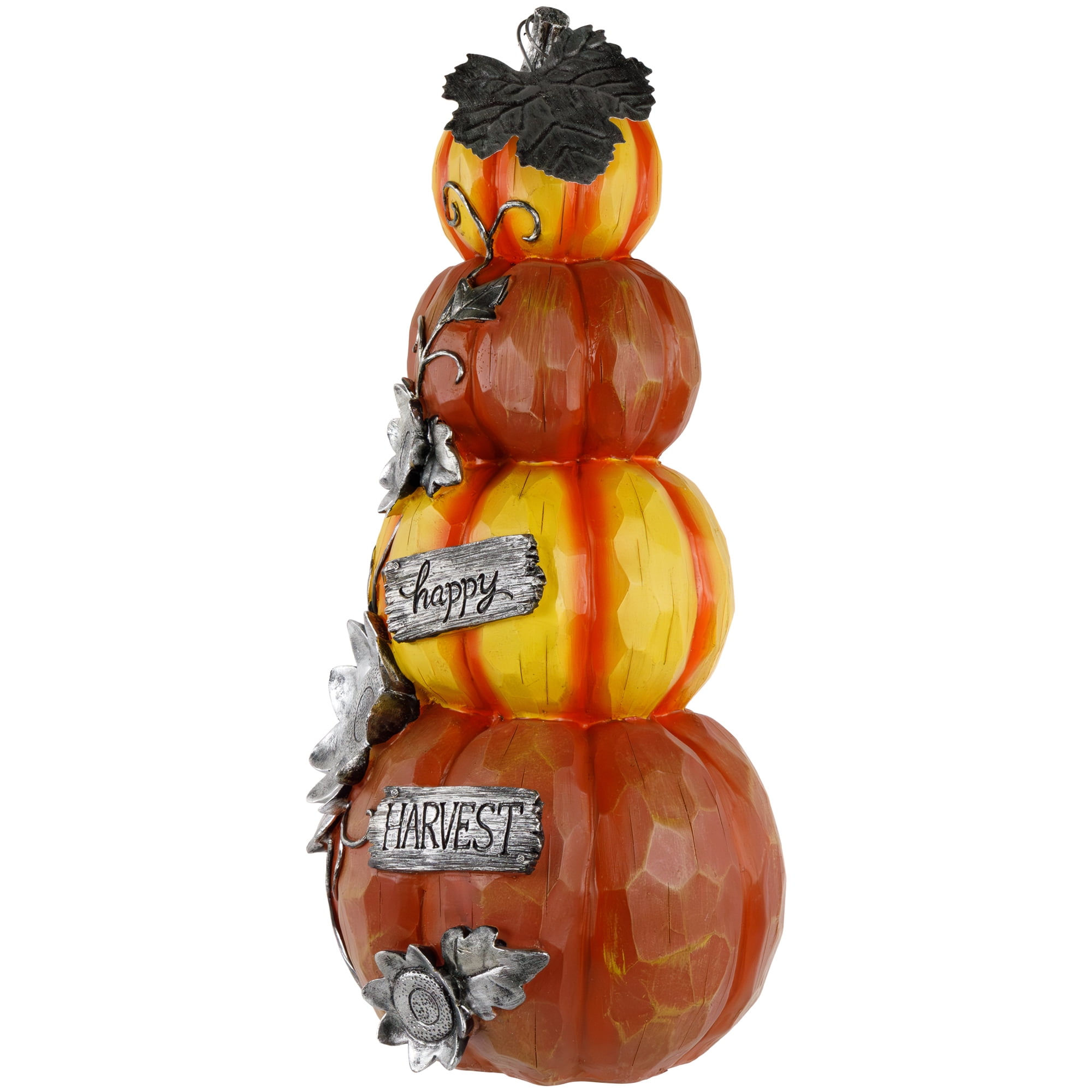 Northlight 18.25” Stacked Pumpkins ‘Happy Harvest’ Fall Outdoor Decoration