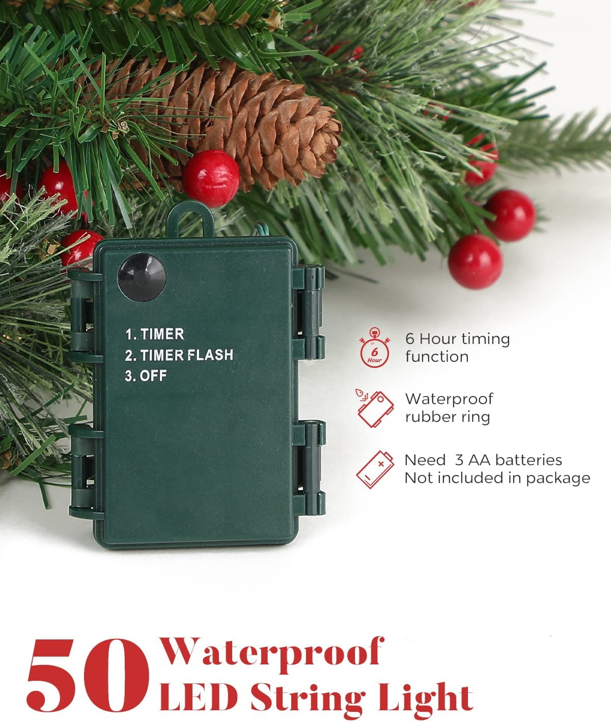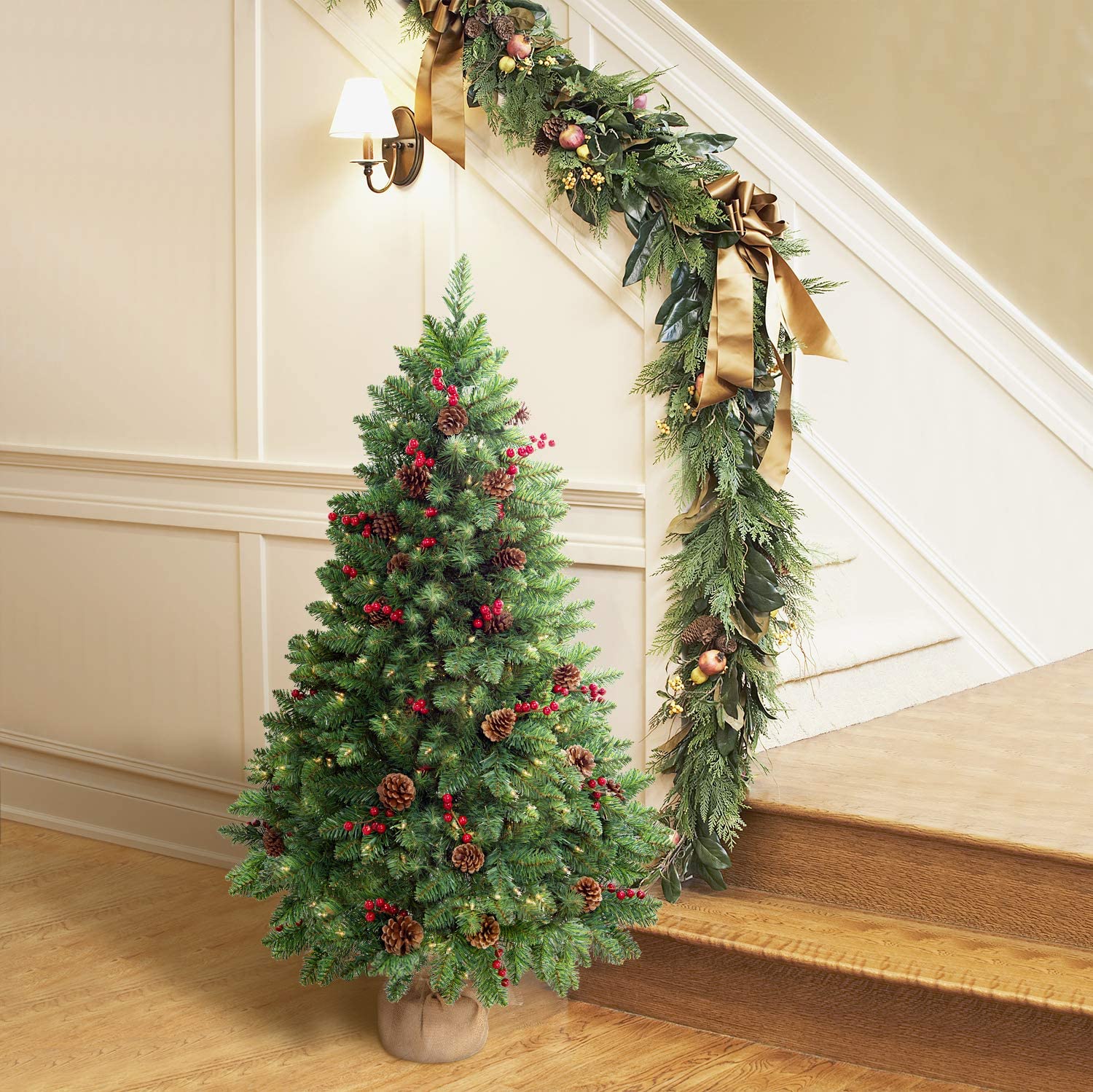 $98.27Original price was: $98.27.$60.19Current price is: $60.19.Introducing our 4FT Lush and Realistic Christmas Tree, designed to bring the perfect festive atmosphere into your home! With a charming conical shape and sturdy horizontal branches, it’s ideal for showcasing delicate ornaments. The tree features 380 sleek and sturdy branches adorned with rich forest green needles, complemented by realistic light brown stems for added warmth. Pre-decorated with real pinecones and red berries, it exudes a festive charm. The UL-certified lights with classic glass casings and commercial-grade filaments ensure durability, lasting at least 3300 hours. Made with flame-retardant materials, it’s safe for both indoor and outdoor use. Enjoy peace of mind with our 3-year warranty, a testament to our commitment to quality craftsmanship. Elevate your holiday decor with our exquisite Christmas tree.