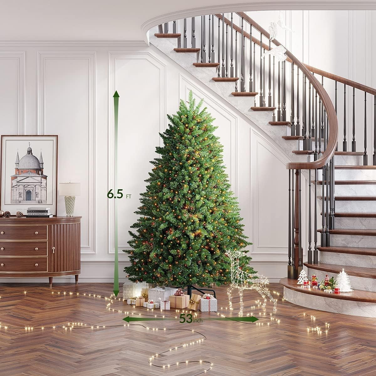 OasisCraft 6.5ft Pre-Lit Spruce Christmas Tree with 600 Color Lights, Artificial Multi-Color Xmas Tree
