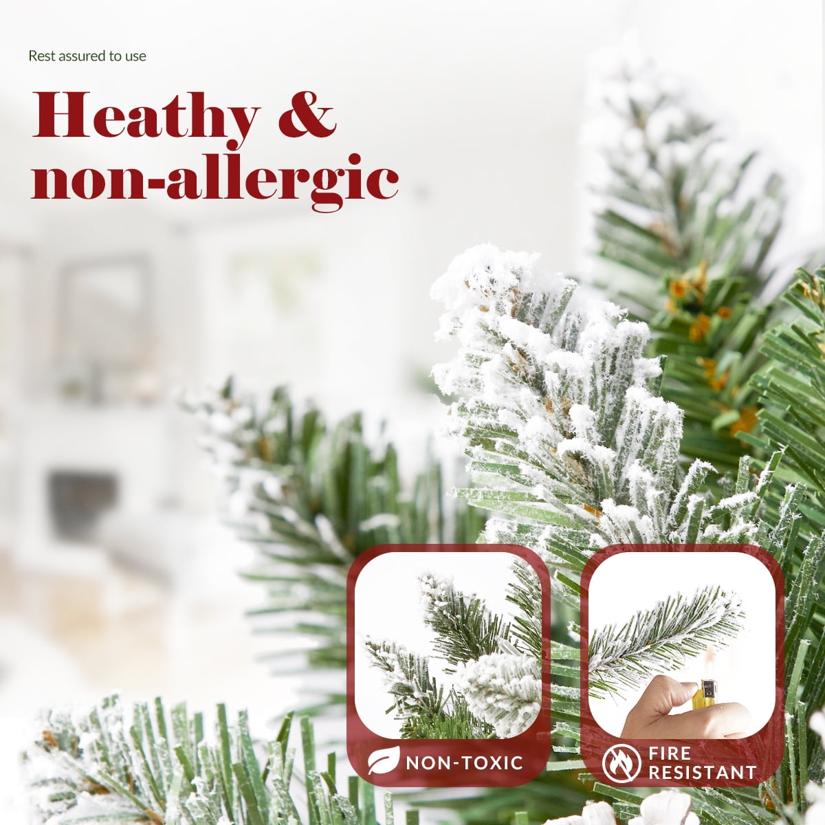 $42.99Original price was: $42.99.$17.19Current price is: $17.19.OasisCraft Bendable Christmas Garlands for fireplace. Pre-lit snow garland is bendable, so you can shape it to your liking. Artificial Xmas Garland bring the breath of nature to your home. Beautiful Indoor Or Outdoor Decor. You can put our decorative snowy Christmas garlands indoor or covered outdoor. If you want to maintain a longer service life, please cover the rain, ice and snow when wintry pine wreath is outdoors. Fire Resistant and Non-Allergenic. Made of high-quality PVC material and has passed various safety tests. You can use it to decorate your home and add a festive atmosphere. 9′ garland with pine cones usually compresses the packaging, so you need to shape them when unpacking. Here are some tips on how to fluff your artificial garlands: Place the garland on a flat surface and straighten it. Starting from the end that most tips stem from, extend the needle upward and then extend the needle out of the main thread. Shape the garland into a row at a time until you finish the entire length. Hang it on your mantel or stairs and continue fluffing to achieve your desired fullness.