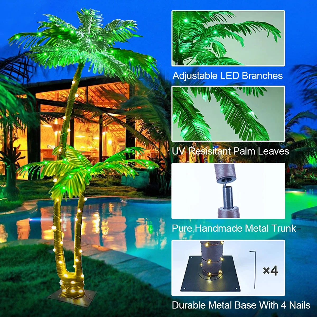 $171.99Original price was: $171.99.$60.19Current price is: $60.19.Lighting offers LED lighted palm trees that are not only beautiful but also fun decorations for your home. These palm trees are designed to be user-friendly, making them easy to use, store, and enjoy. Both the trunk and the canopy of the palm tree are adorned with LED lights, which are not only visually appealing but also energy-efficient. Additionally, these trees come equipped with a multi-function remote control for added convenience.These palm tree lights and decorations are perfect for various occasions such as parties, special events, or simply enhancing the ambiance of your home. Whether you want to create your own tropical getaway or add some excitement to your next gathering with loved ones, these LED lighted palm trees are an excellent choice.