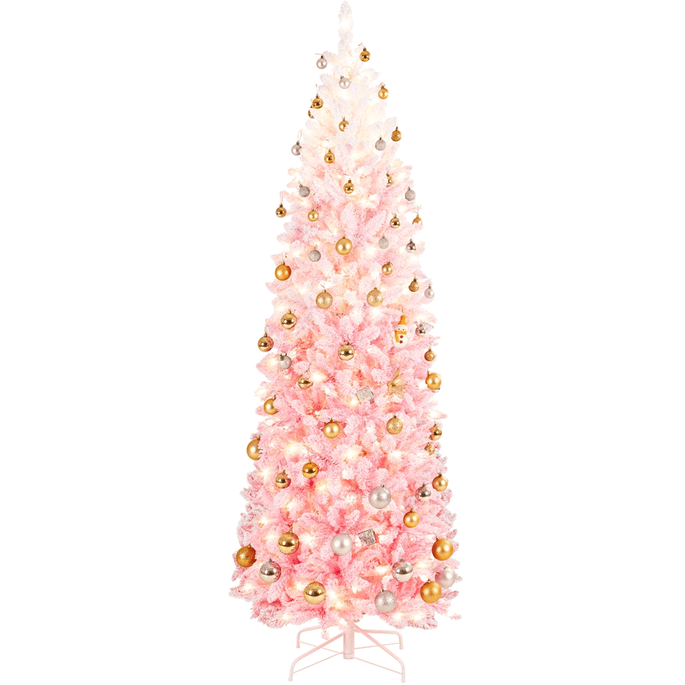 $63.64A pencil artificial Christmas tree with lights is a timeless and space-saving option for your home. The snow-dusted branch tips are made of high-quality PVC, which makes them durable and flexible. The lush man-made leaves give the tree a full and realistic appearance, adding a touch of winter holiday charm to your place. The clear warm lights on the tree create a festive and peaceful atmosphere. The tree comes with a foldable metal stand that is easy to carry and store. It is sturdy enough to hold extra ornaments; you can customize it according to your preferences.