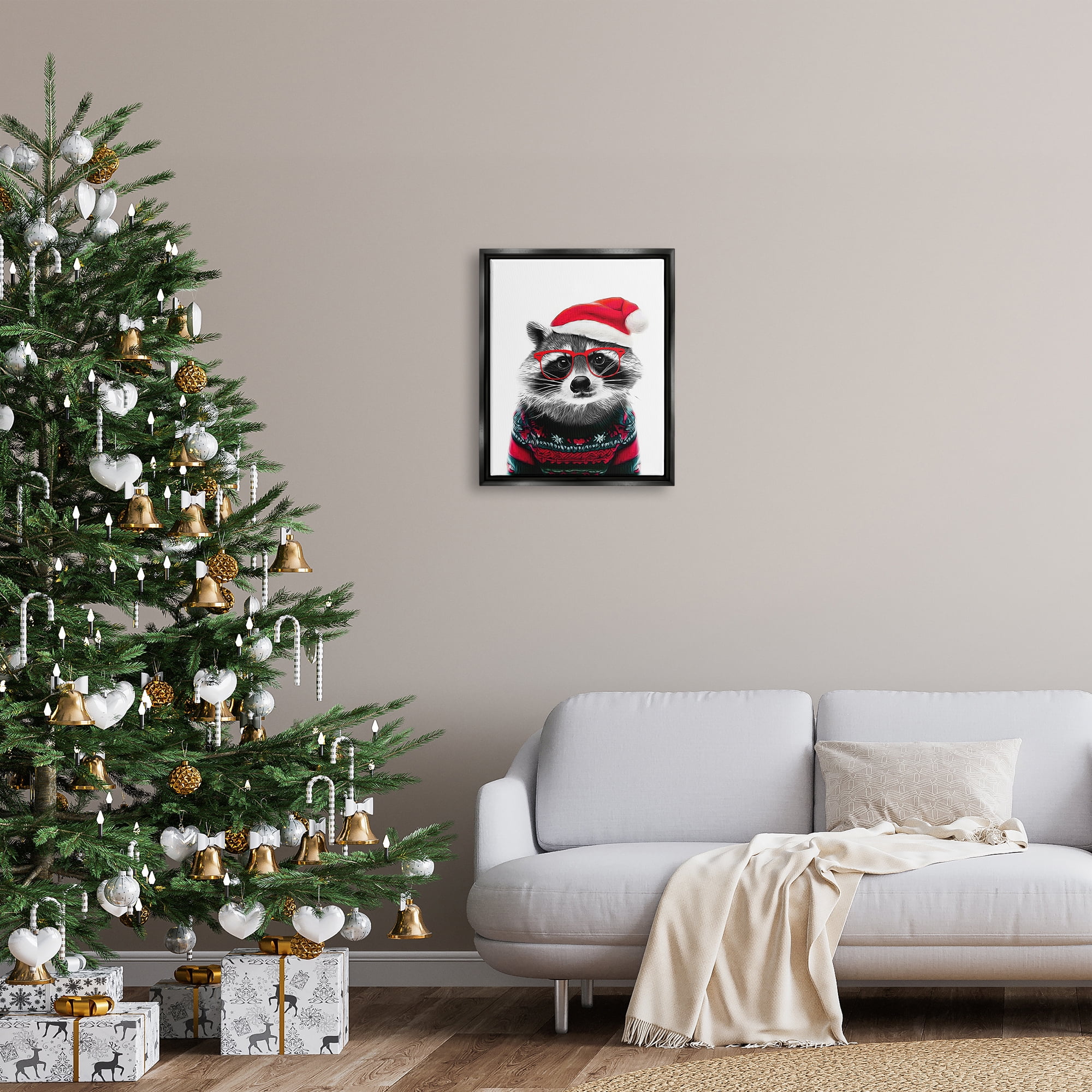 Stupell Industries Raccoon in Holiday Sweater Holiday Painting Black Floater Framed Canvas Art Print Wall Art, 17 x 21