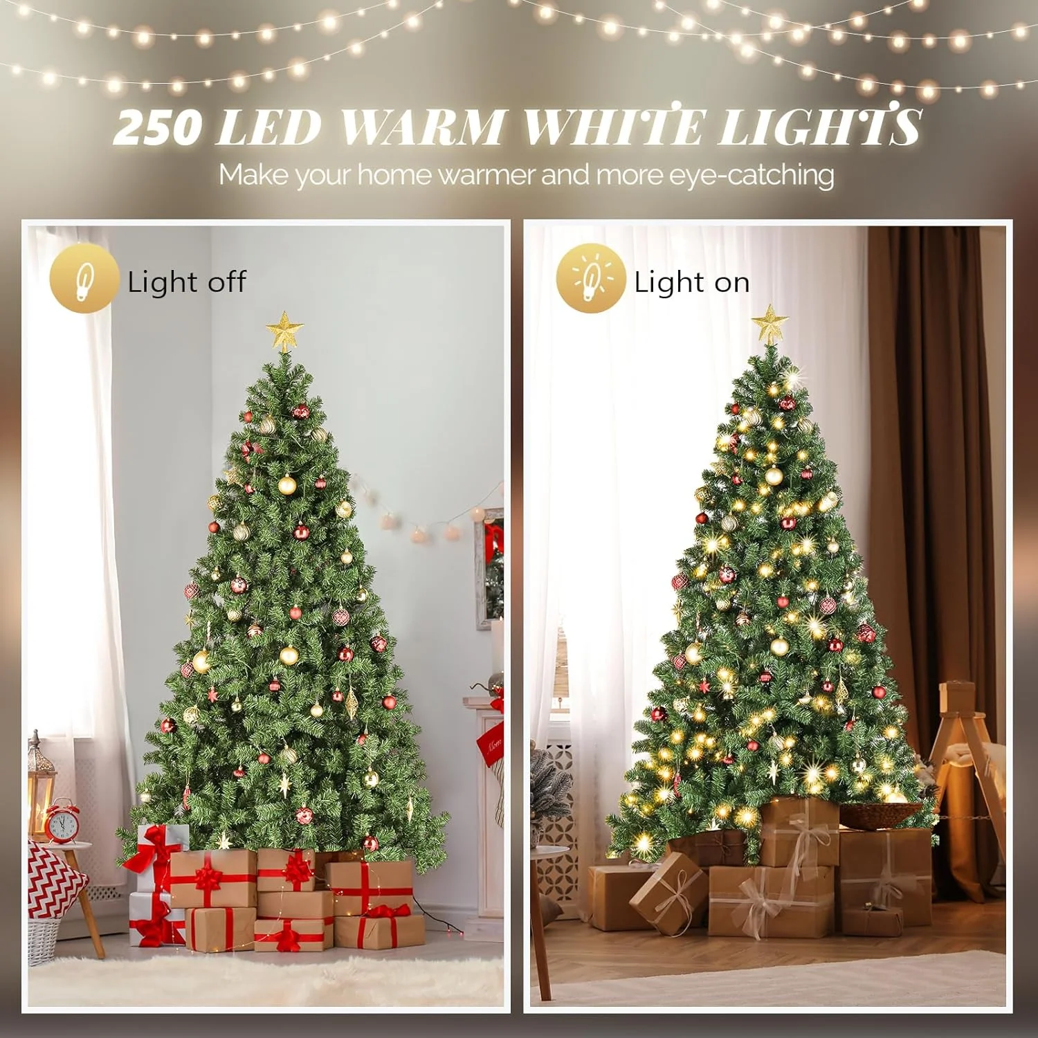 SUGIFT 6.5Ft Premium Artificial Christmas Tree w/ 1000 250 Lights Indoor Outdoor Green