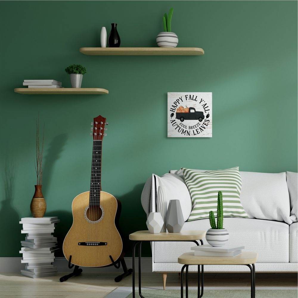Stupell Industries Happy Fall Y’All Pumpkin Truck Autumn Seasonal DesignCanvas Wall Art By Artist Lettered and Lined