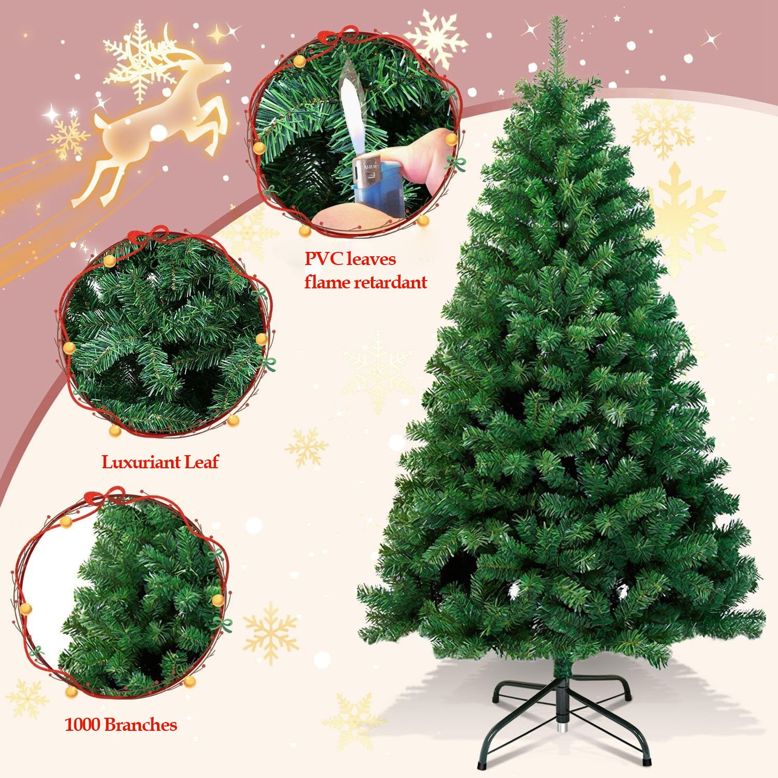 $29.32SUGIFT 6ft Artificial Christmas Tree The thick leaves of our desktop Christmas tree are made of PVC and PE materials. It is suitable for indoor and outdoor use, and is also safe for babies and people with allergies.Secondly, The fake Christmas tree does not need to be assembled, the simple green color and natural pinecones create the natural appearance of a rich and authentic tree.You can also decorate the realistic Christmas tree with all kinds of decorations you like,such as wreaths,Christmas socks,snowman ornaments and lights to make this tree look more unique Why not enjoy the holiday with this beautiful Christmas tree? Specifications: Color: Green Material: PVC、PE + metal wire Number of Tips: 1000(6ft)