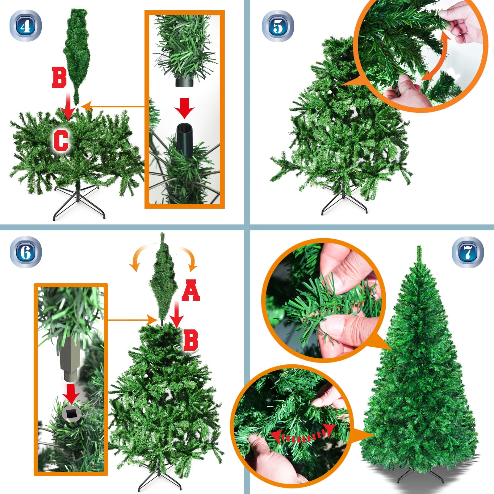 $62.37Color: Green; PVC material. The steel base is included. Size: 7′ H (from the base of stand to the top of the tree); Max Dia of the tree: 44″(112CM) Leaf width:2.76″ + 2.76″ , Leaf thickness:7s; With Snow Tipped Branches Easy to set up and storage – comes in parts, branches can be folded Perfect for both indoor and outside decoration