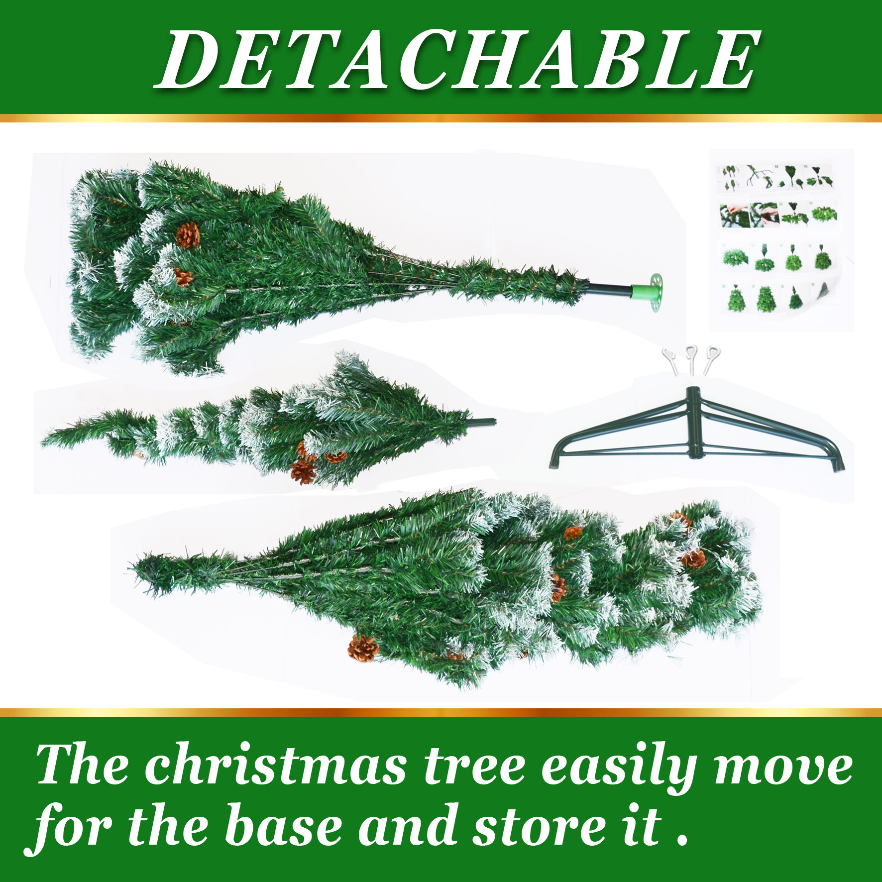 $94.57Make the holiday season bright and wonderful! The Christmas tree comes in a rich uniform color, with natural green leaves,Crafted with 559 branch tips ,200 lights,pine cones,and snow flocked leaves, the 6 ft Christmas tree is leafy and will give you an elegant look .The high-quality design of this tree’s branches makes for a full shape that simulates the real thing!Christmas Tree comes with a durable metal base that can help stand the tree up straight inside or outside of your home and it will Add A Warm, Festive Feeling To Any Setting. Welcome This Tree Into Your Home And Enjoy Its Beauty For Many Holidays To Come! Feature the 6.5 ft Christmas tree is leafy collocation Flocked Snow Pine Cone and red trim,will give you an elegant look . 200 Warm white string lights will give your home a warm feeling. Set up your tree in 3 simple steps: connect the base, attach the sections, and easily fluff the branches for a full look. Crafted with premium metal hinges, flame-retardant PVC branches, and a sturdy metal base, our tree is built This christmas tree is an ideal choice for outdoor and indoor using. PVC material reinforce the waterproofness and metal stand help the tree stay straight in the wind. Holiday party with garland, lights, ornaments, and more; create a festive ambiance that suits your style.