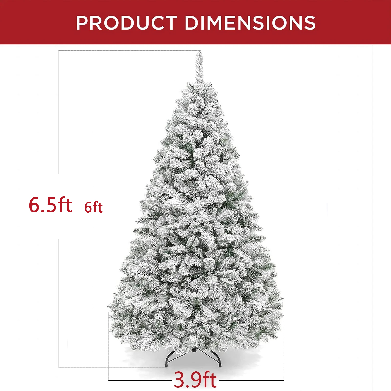 SUGIFT 6ft Artificial Christmas Tree with Flocked Snow Xmas Holiday Decoration for Home, Office, Party