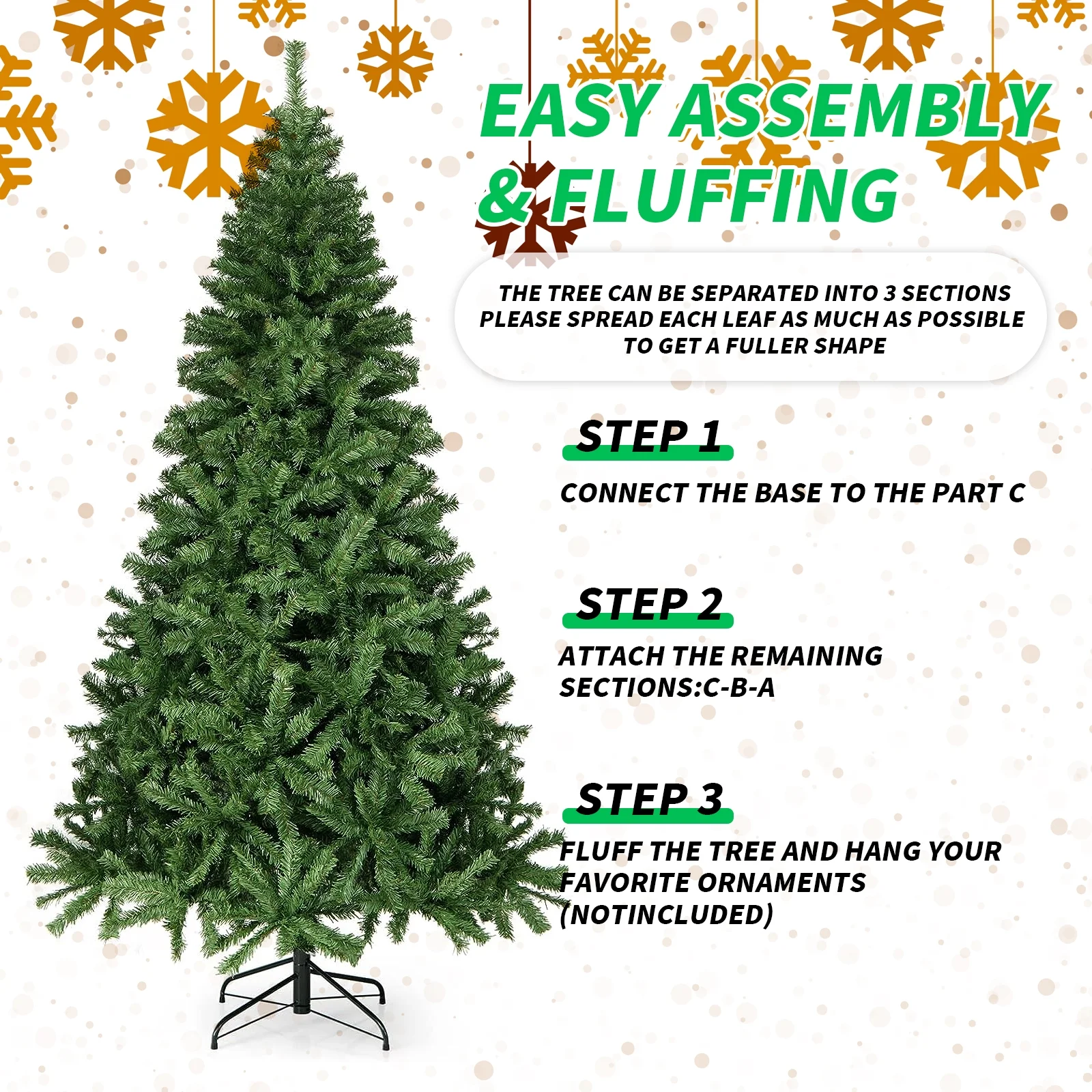 $171.99Original price was: $171.99.$60.19Current price is: $60.19.About this item High Quality Material: All branches and tips are made of premium PVC, which makes them harmless and durable. Both trunk and the stand are made of iron, ensuring sturdy and balanced placing, not to mention other feathers such as fire-resistant and anti-collapse. Classic & Full Appearance: The 7.5ft Artificial Christmas tree is designed into classic spruce tree. With ultra-realistic 1405 PVC branches tips, it will bring you a full appearance after fluffing while there is also ample space to hang different types of ornaments in your preferable way. Sturdy & Stable Metal Base: The 7.5ft Christmas tree is supported by a crossed metal base that is connected to the trunk with 3 reinforced screws, ensuring excellent sturdiness and great stability. And there exist non-slip footpads on the bottom protecting your floor from scratching. Easy to Set Up: The 7.5ft Christmas tree is made based on a hinged system, the tree body is divided into 3 sections with label on them. You could set up this tree by simply inserting a tree part on another. The stand can also be effortlessly folded out and connected to the tree body with screws. Multiple Uses: Our green spruce artificial tree can be used either indoors or outdoors, the sturdy metal frame is relatively heavier and not likely to collapse. It is an unlit tree with no decoration on it except for branches and tips. We hope you can enjoy a sweet fun time decorating this full and fluffy tree with your family and beloved ones. Specification: Color: Green Size: 7.5ft Material: PVC + Metal Amount of Hinged Branches: 1405 Package Includes: 1 x Christmas tree 1 x Instruction