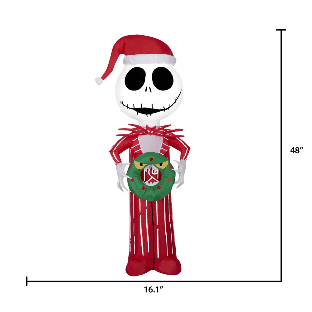 The Nightmare Before Christmas Jack Skellington with Red Suit and Monster Wreath, 4 Feet Tall