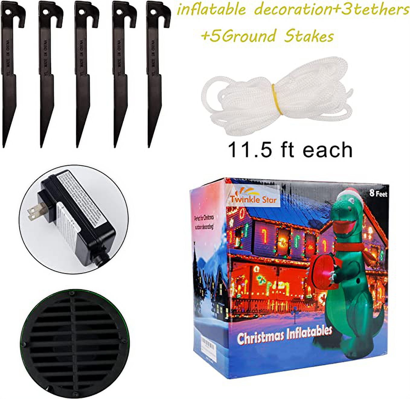 $111.79Original price was: $111.79.$51.59Current price is: $51.59.It adds an eye-catching centerpiece to your holiday seasonal layout and welcomes your guests with warm wishes. With LED lights inside, light up at night and make your home a new sight in your neighborhood. The christmas outdoor decorations are made of thickened waterproof polyester fabric to ensure years of usage. Soft, light and firm, wear-resistant. Please make sure the air blower is facing up when inflating. The air blower facing the ground will affect the effect of inflating. Our christmas yard inflatable is easy to install, just plugged in and the built-in fan in it can inflate itself instantly. Everything pops up in a moment. Don’t forget to zip up the bottom zipper. For storage simply let the air out and fold it.5 ground stakes and 3 tethers are provided for tie-down. Built-in fixed sandbag, an opening at the bottom with a zipper provides space for adding some heavy objects to make it more secure and stable. No need to worry that your christmas yard inflatables will fly away with the wind. Blow up christmas dinosaurs are great christmas indoor and outdoor decorations that can be used for decor front door, yard, lawn and garden, christmas parties, and new year’s party. If used outdoors, garden, yard, lawn, please make sure the fan and adapter are away from water.