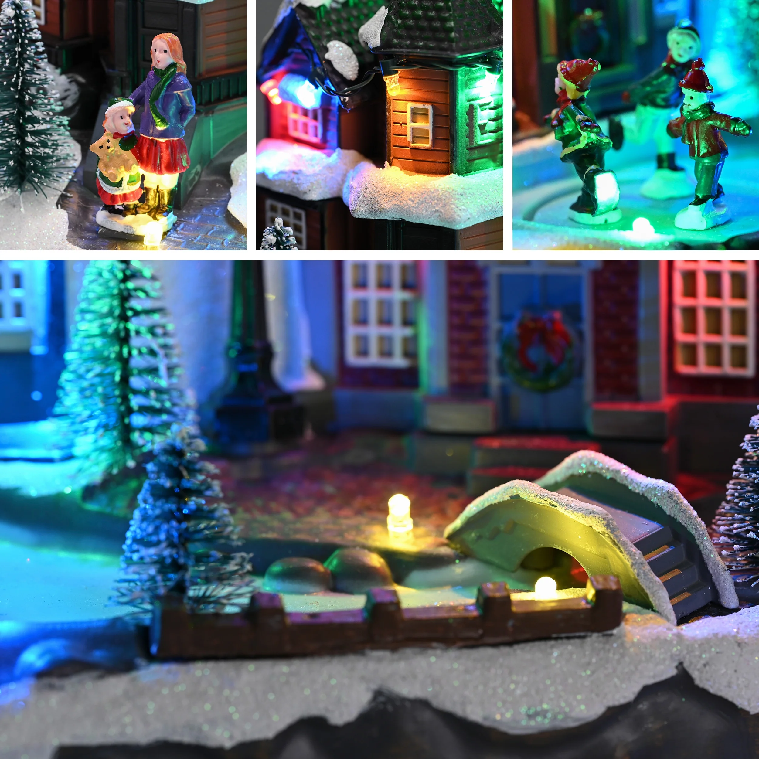 Valery Madelyn 13.3 inches Dynamic Christmas Village, Multi-color Lighted Sledding Down Hill Large Snow Skating Pond Musical Christmas Decoration for Holiday Table Top Decoration