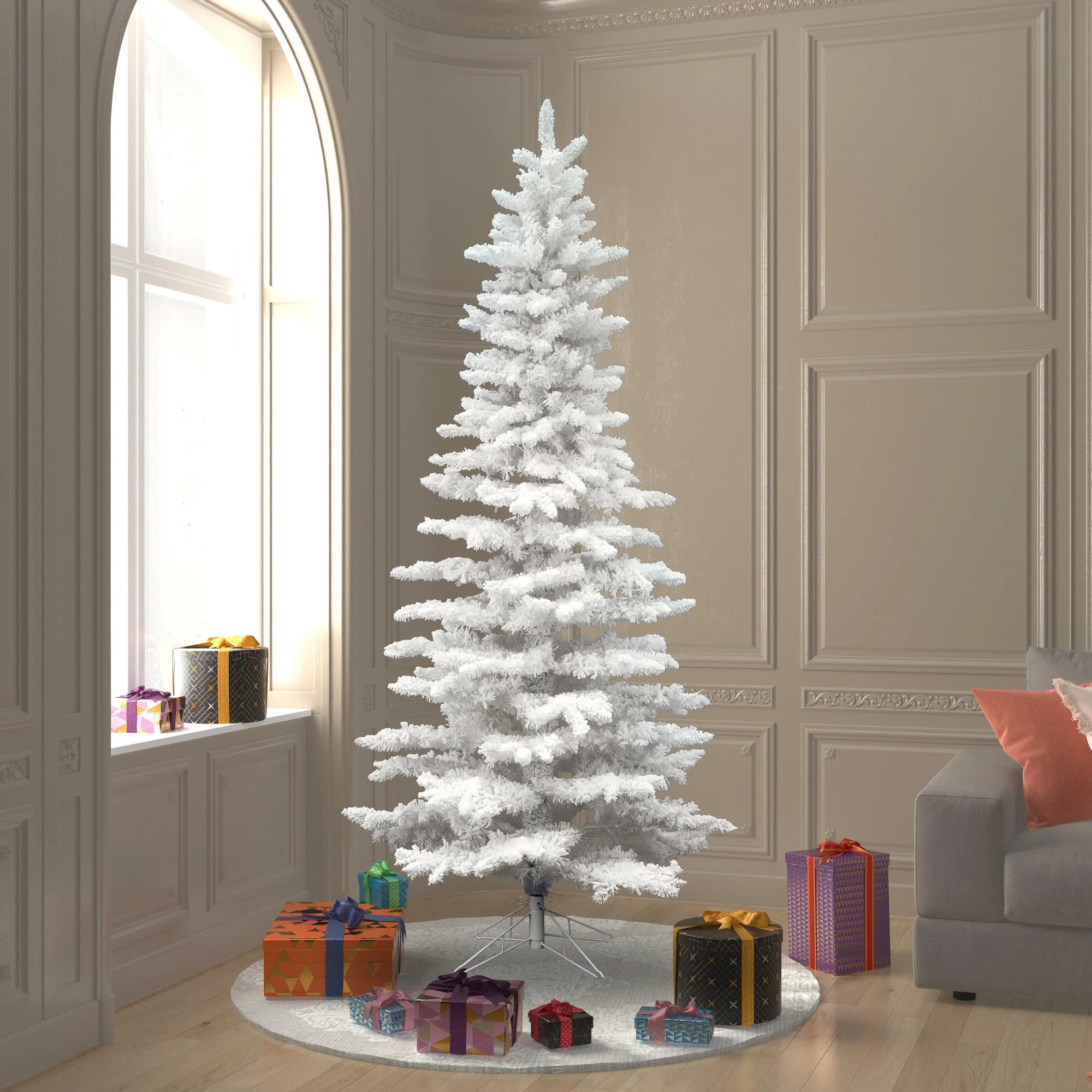 Vickerman 7.5′ Flocked White Slim Artificial Christmas Tree, Unlit