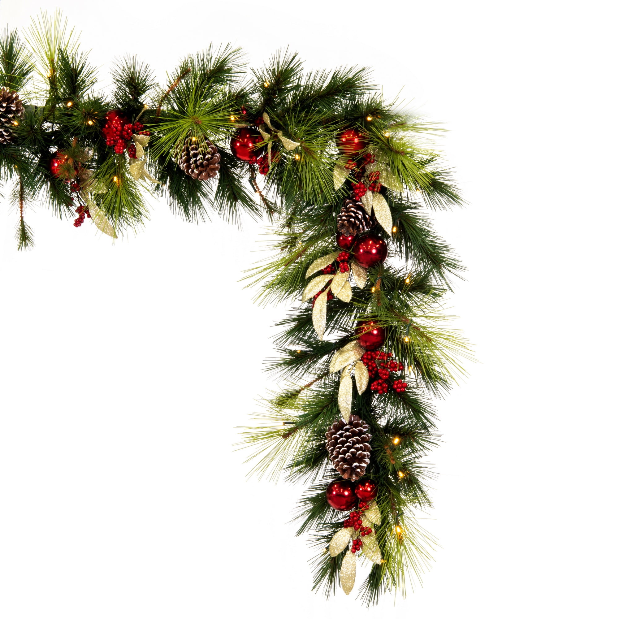$55.67Original price was: $55.67.$49.70Current price is: $49.70.Vickerman 6′ x 16″ Artificial Christmas Garland with 74 PE/PVC Tips, Decorated with with Red Berries and Ball Ornaments, Gold Bayleaf and Pine Cones. The perfect addition to any Holiday Décor, this beautiful garland features a flexible wired spine, comes prelit with 50 Battery Operated Warm White LED Lights, a 6Hr On/Off Timer, and is Recommended for indoor use only.