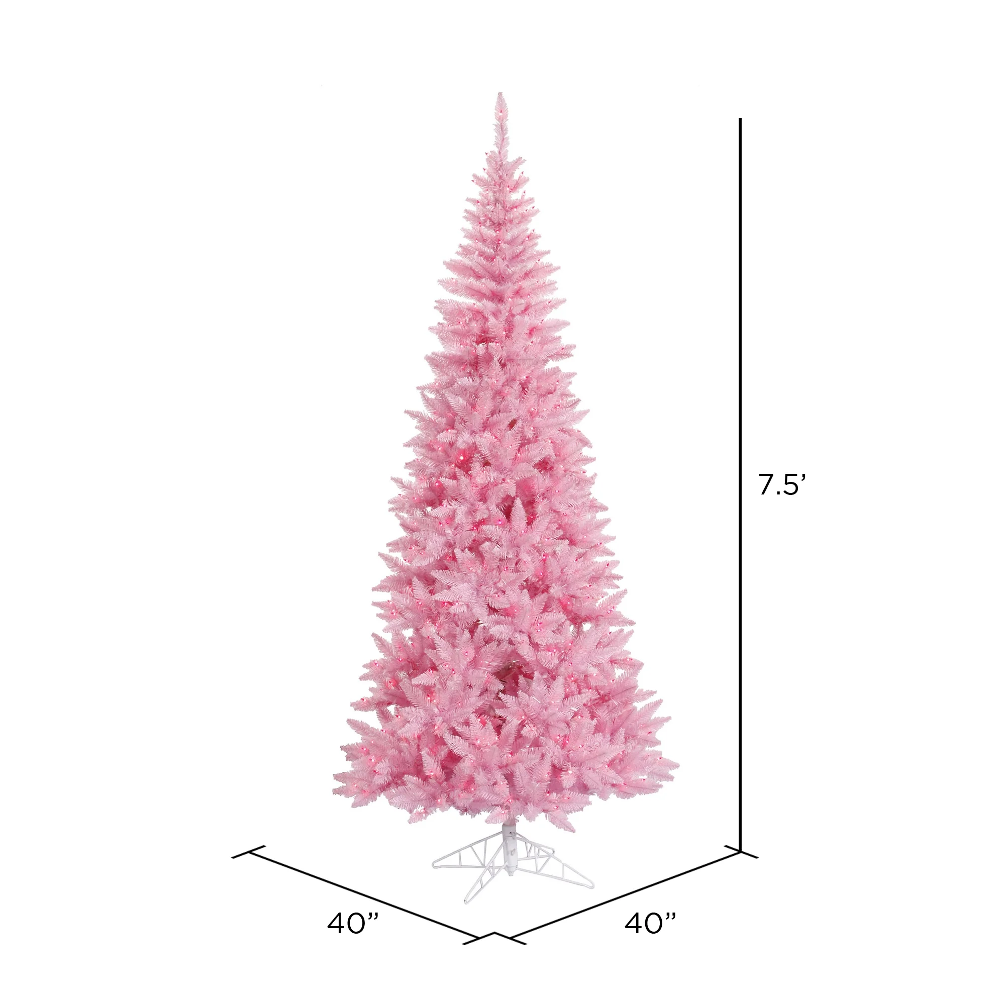 Vickerman 7.5′ Pink Fir Slim Artificial Christmas Tree with Pink Dura-lit LED Lights