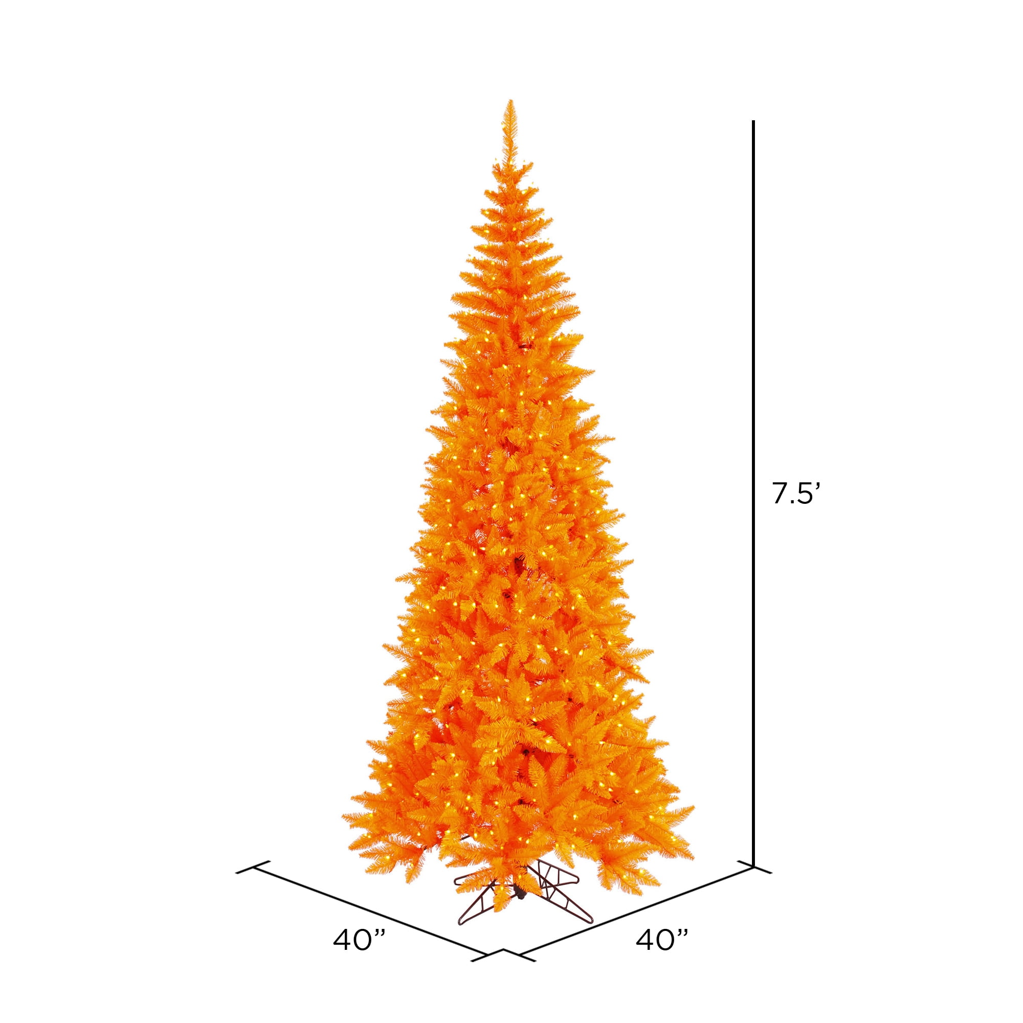 Vickerman 7.5′ Orange Fir Slim Artificial Christmas Tree, Orange Dura-lit LED Lights