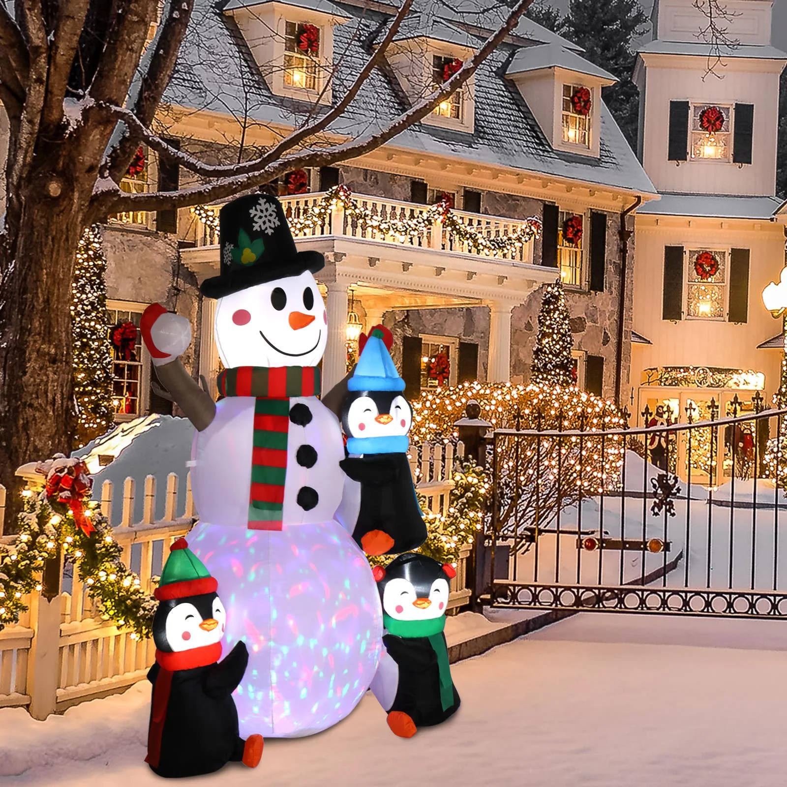 Zimtown 6FT Inflatables Snowman with Three Penguins Outdoor Christmas Decorations for Holiday Lawn Garden Party