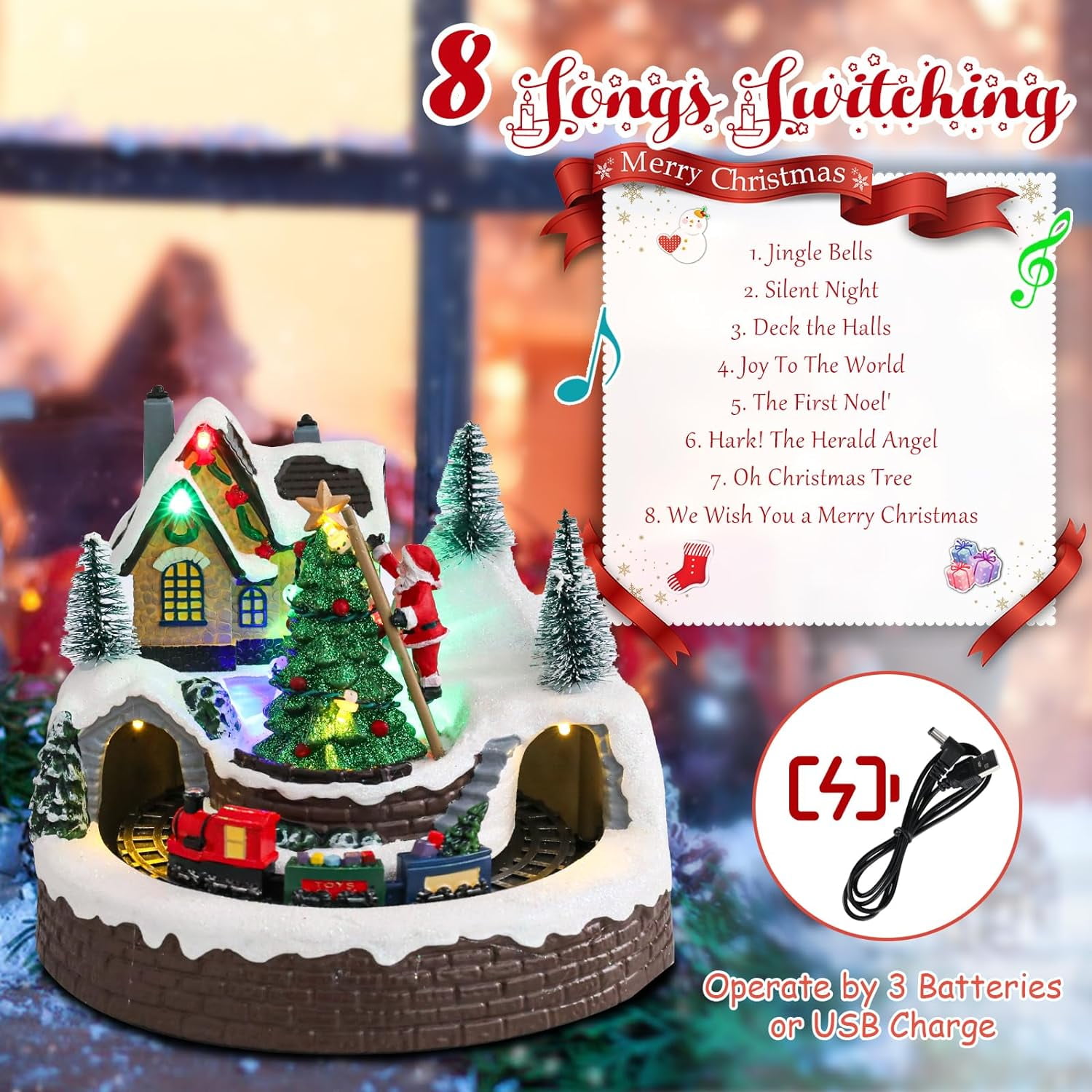 $30.38The Christmas Village House is made of durable resin materials, it’s not easy to break and crack, which is equipped with a tiny train moving along the house. Santa Claus decorates the Christmas tree in front of the house to celebrating the birth of Jesus.