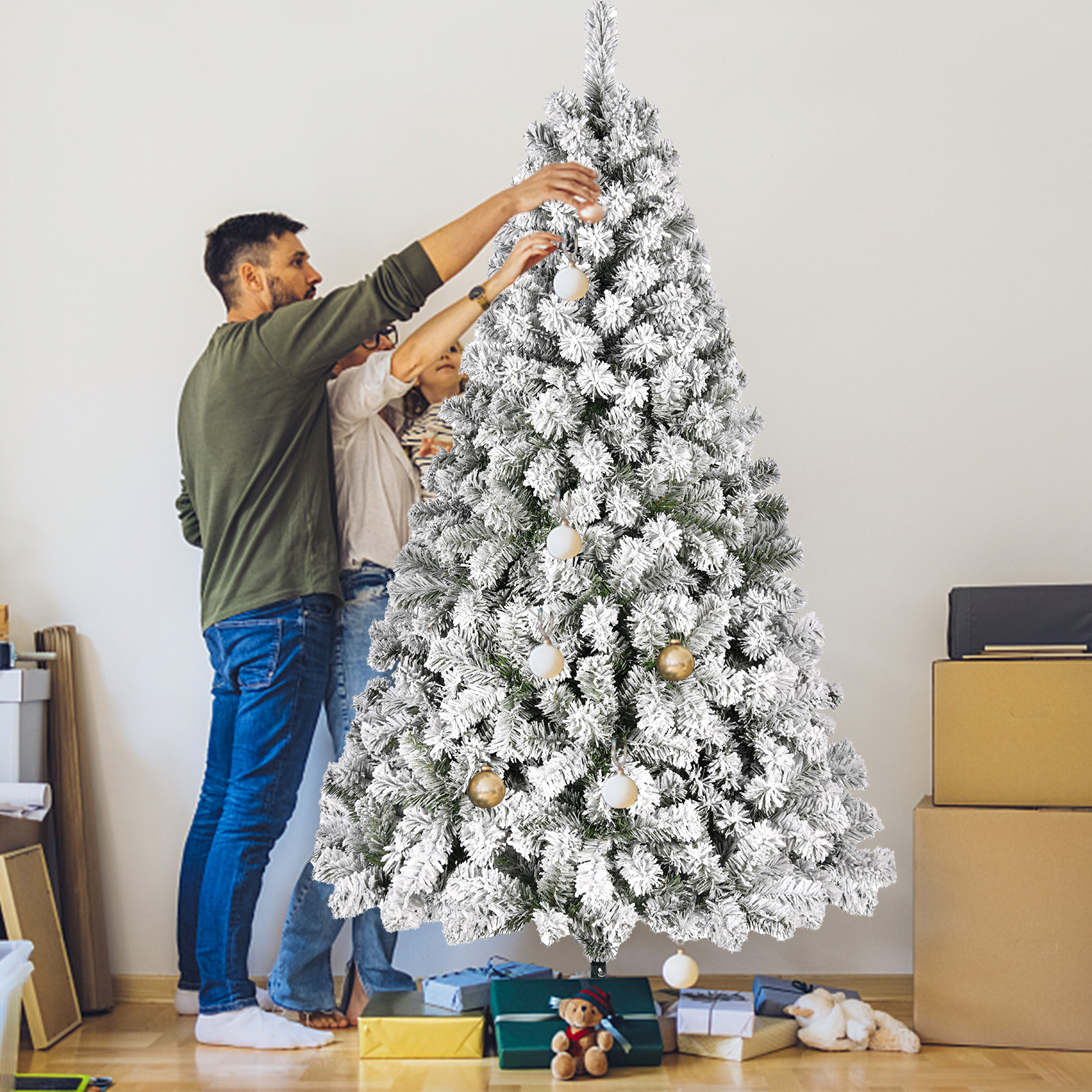 $240.79Original price was: $240.79.$128.13Current price is: $128.13.Yexmas White Snowflake Flocked Christmas Tree is the perfect choice for your holiday decor. Available in three different sizes,prelit christmas tree comes with warm white lights to add a cozy glow to your home. The branches are adorned with realistic snowflakes, providing ample decorating space and making the tree look fuller and more vibrant. Made from 100% new PVC material, the artificial christmas tree is flame-resistant and hypoallergenic, offering a safer alternative to natural trees. Additionally, a white faux fur tree skirt is included to add a touch of luxury and protect your floor. Whether for family gatherings or festive celebrations, this Christmas tree will be a dazzling highlight in your home.