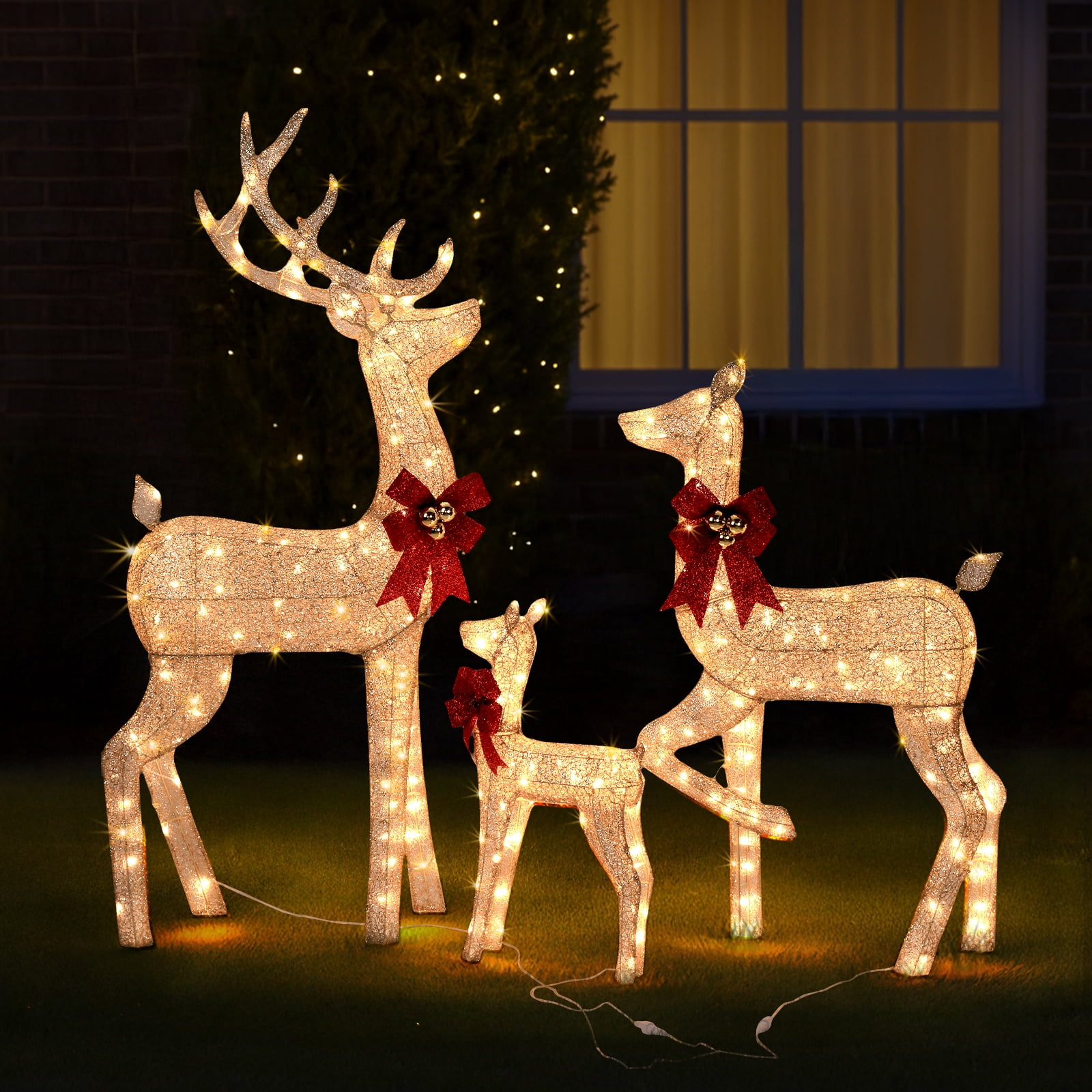 $111.79Introductions: Enhance the festive charm of your outdoor space this Christmas season with our Zimtown Outdoor Yard Decoration Set. This set includes three adorable reindeer figures that will surely capture everyone’s attention. Each reindeer stands at a height of 48in, making it an eye-catching addition to your yard. Specifications: 1. Material: Iron Frame, Cotton Thread, Gold Powder, Plastic Decorative Knot 2. Color: White 3. Male Deer Dimensions: (47.24 x 23.62 x 7.87)” 4. Doe Dimensions: (36.22 x 25.2 x 5.91)” 5. Fawn Dimensions: (23.62 x 4.72 x 13.39)” 6. Adapter Parameters: Power 3.6w, Voltage 30v, Current 0.2A 7. Number Of Light Strings: 60 Lights For Fawn; 90 Lights For Doe; 120 Lights For Male Deer Package Includes: 3 x Disassembly Type Elk 1 x 120V Adapter 1 x Power Cord 12 x Ground Spikes 9 x Cable Tie 4 x Foot Support Rod Light String Inside Deer Body