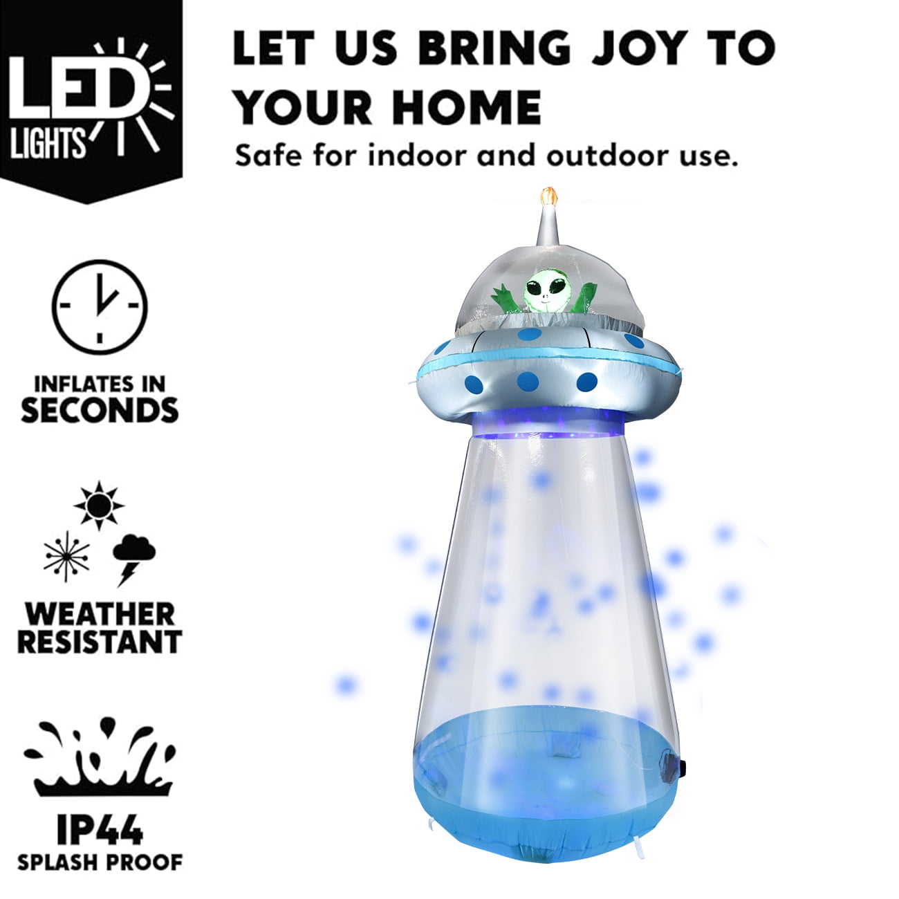 $60.19Alien halloween decorations inflatables add the festive atmosphere in your yard, garden, patio, lawn, doorway, fireplace. Be a glorious addition and focus guests and friends attention in every holiday party. Made of IP44 waterproof and durable polyester fabric material. Weather resitance, without worrying about strong winds,snow.