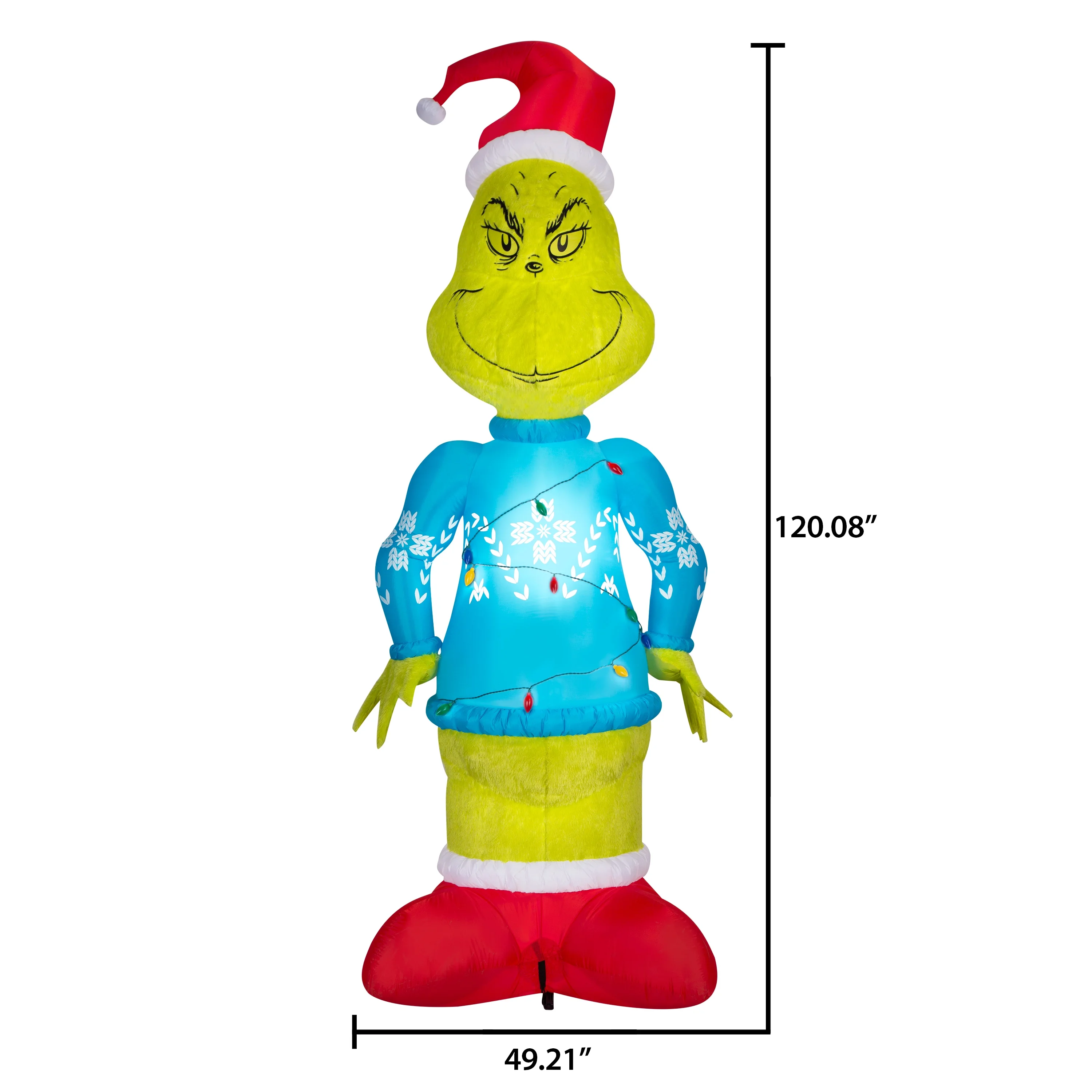 Airblown Inflatables Christmas Fuzzy Plush Grinch in Blue Sweater with Light String Giant Dr. Seuss