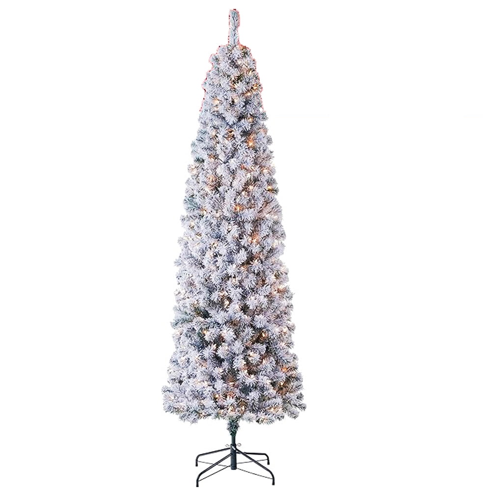 9 ft. Pre Lit Clear Incandescent Narrowed Flocked Pencil Pine