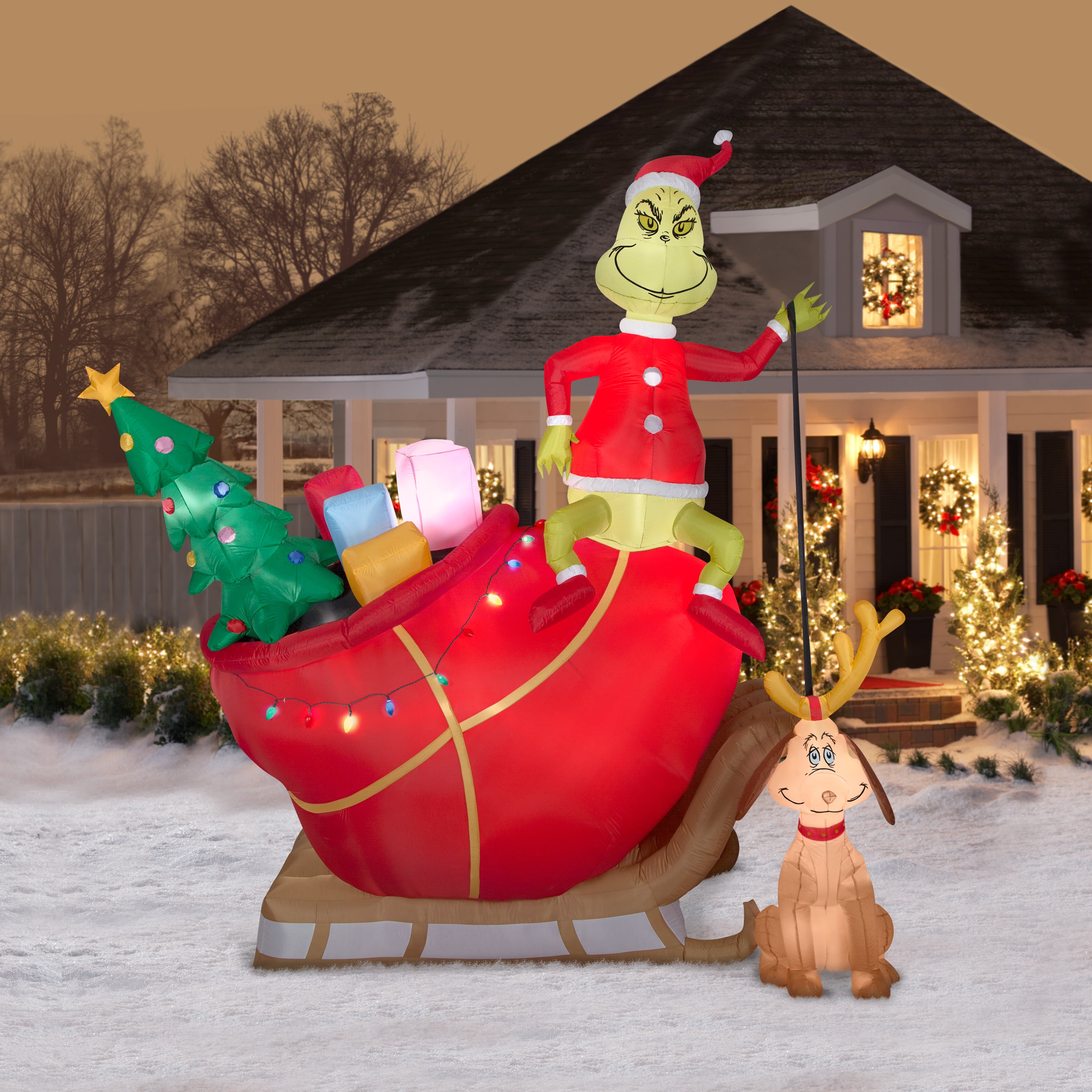 Airblown Inflatables Christmas 12 Foot Grinch and Max in Sleigh