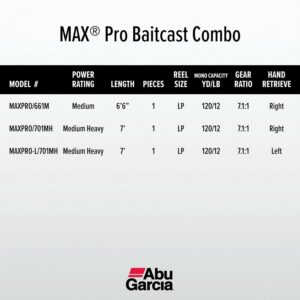 Abu Garcia Max Pro Baitcast Fishing Combo, 7′ Medium Heavy Rod, Left Handed Reel