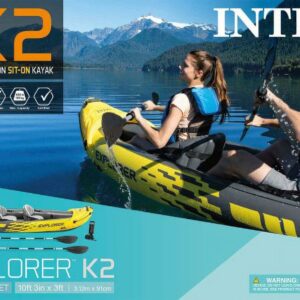 Intex Explorer™ K2 Inflatable Kayak – 2 Person Kayak Set – Includes Deluxe 86in Aluminum Oars, High-Output Pump, Carry Bag, and 2 Adjustable Seats