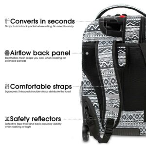 J World Unisex Sundance 20″ Rolling Backpack with Laptop Sleeve for School and Travel, Tribal