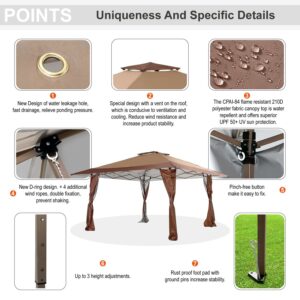 MF Studio 13 x 13ft Pop Up Canopy Outdoor Gazebo Canopy Tents for Party with Wheeled Carry Bag Brown