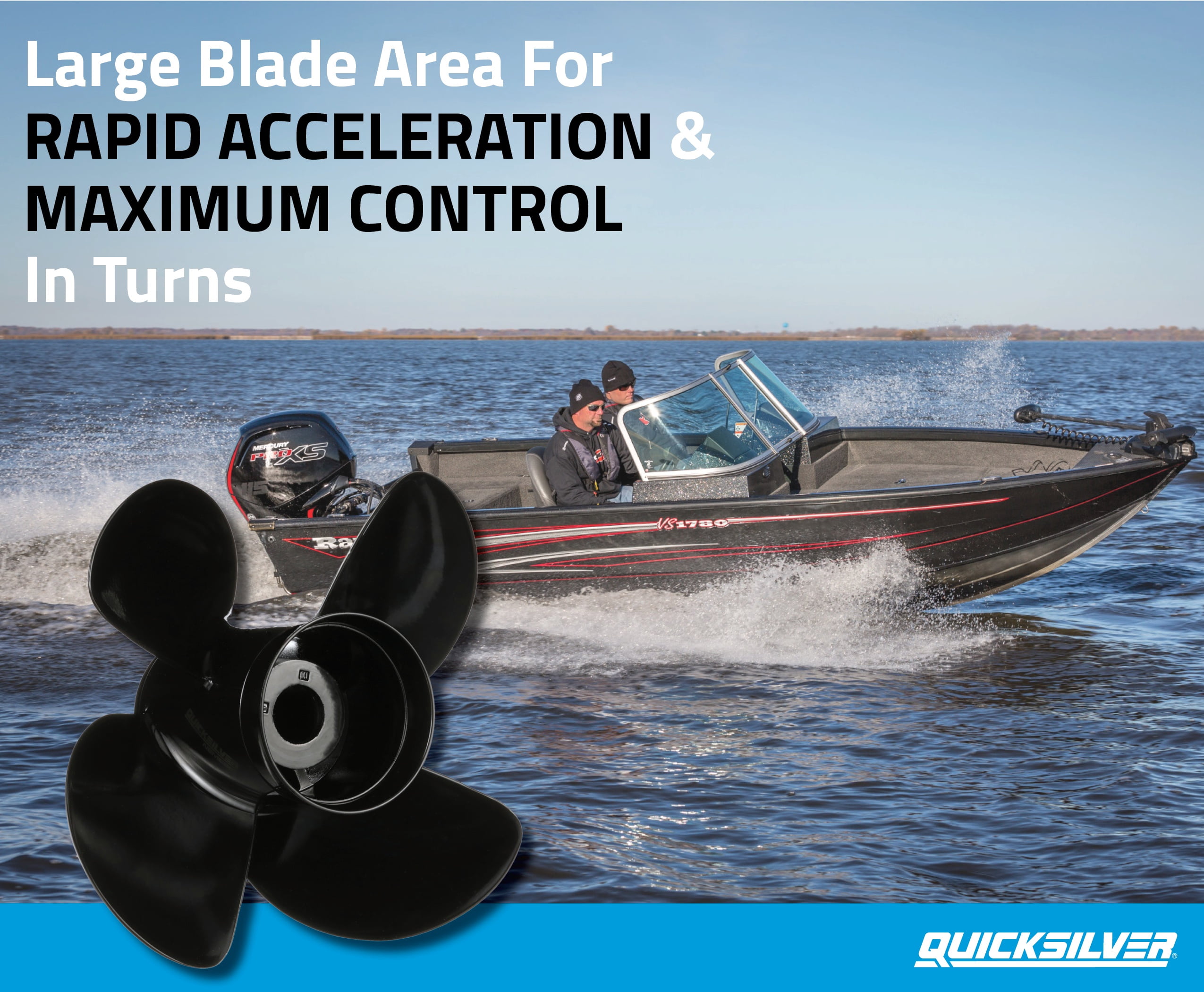 Quicksilver Nemesis 4-Blade Aluminum Propeller, 13.8″ Diameter x 13″ Pitch, Right Hand Rotation
