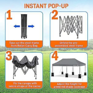 SereneLife Pop Commercial Instant Shelter-Waterproof Polyester Tent W/ Sand Bag, 10×20 ft. (Gray)