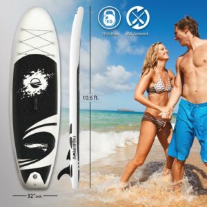 SereneLife 11 Foot Free Flow Inflatable SUP Stand Up Paddle Board Kit, White