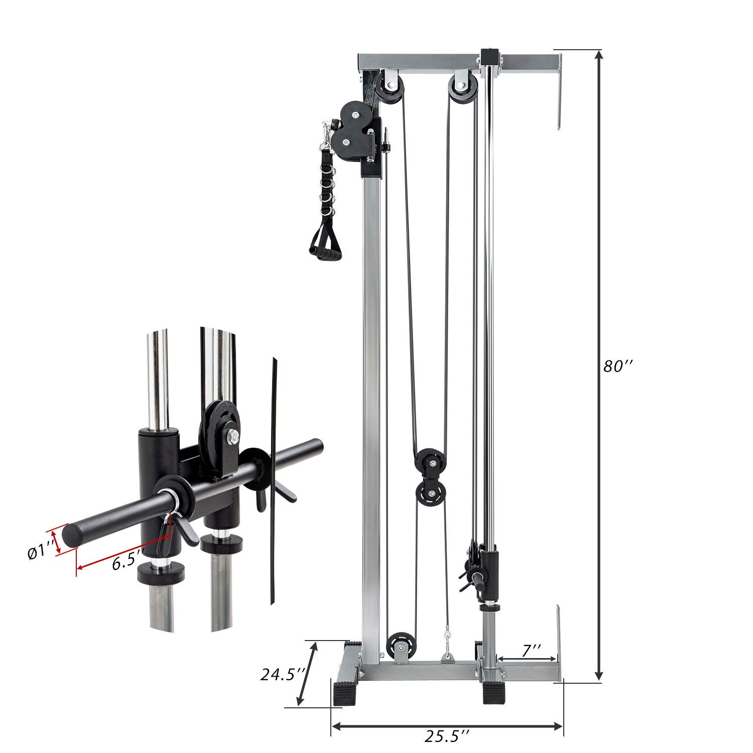 Euroco LAT Pull Down and Row Cable Machine, 350 lbs Resistance, Adjustable Foam Rollers, Silver