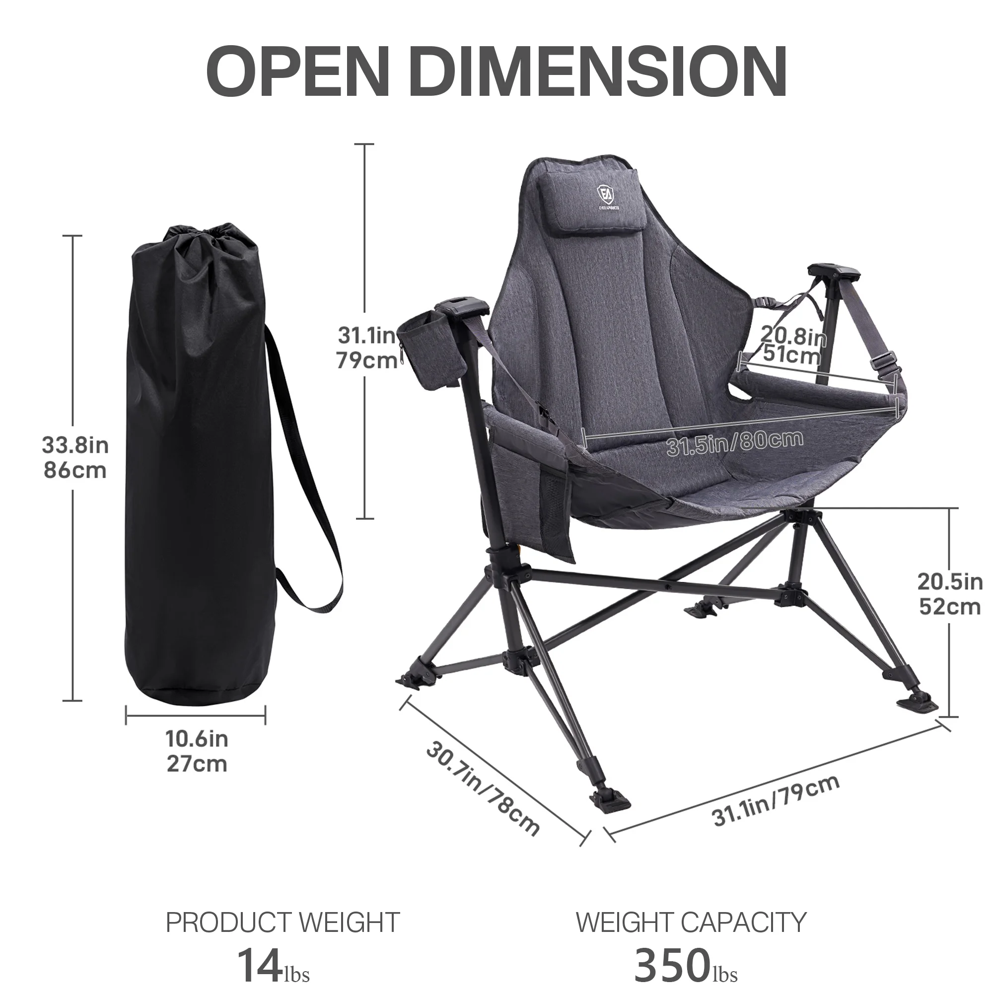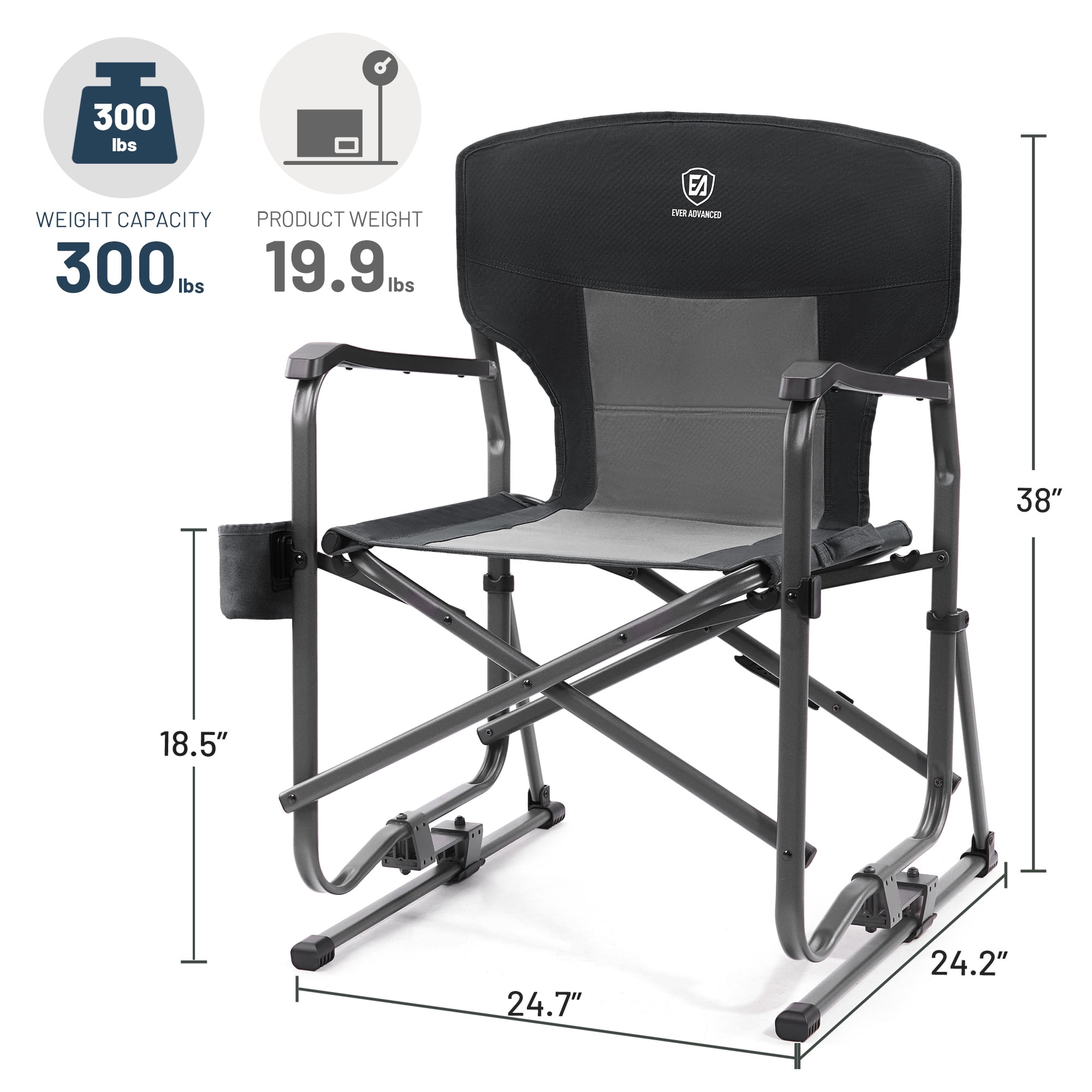 EVER ADVANCED Rocking Camping Chair, Folding Swing Chair with Stand,Black