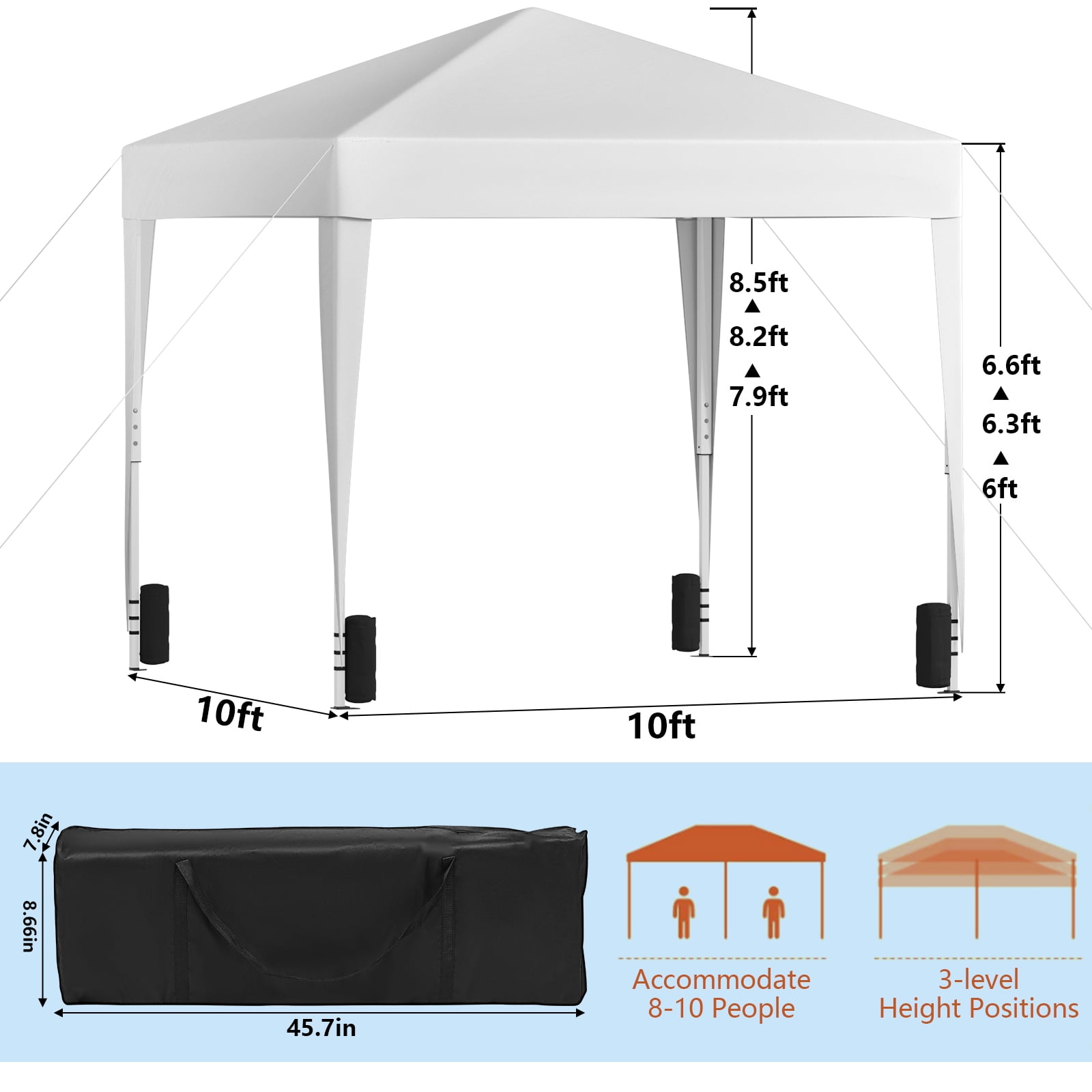 Fenbeli 10×10 Pop Up Canopy Tent with Sand Weight Bag, White