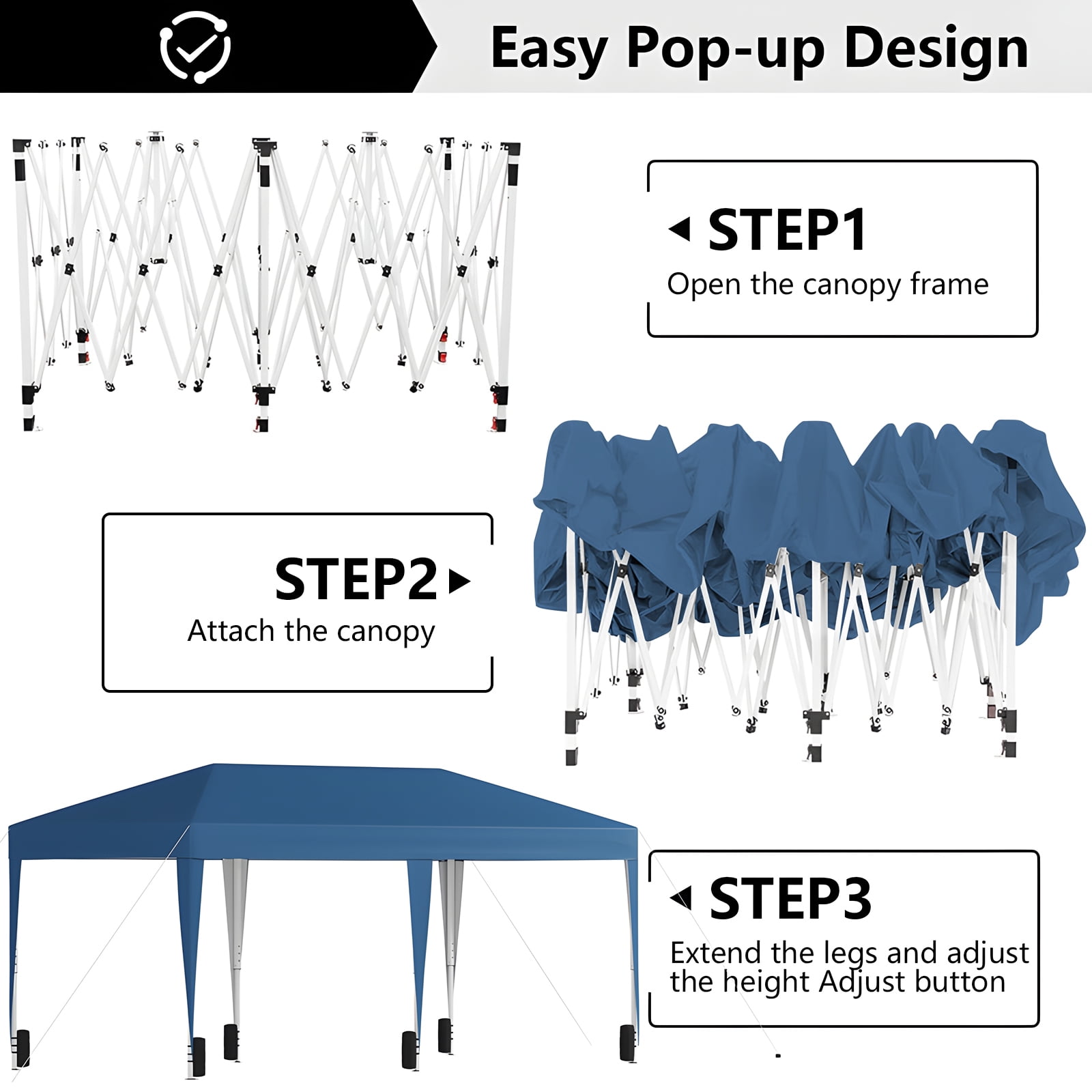 Fenbeli 10×20 Pop Up Canopy Easy Setup Outdoor Canopy Tent for Events, Camping, and Backyard, Blue