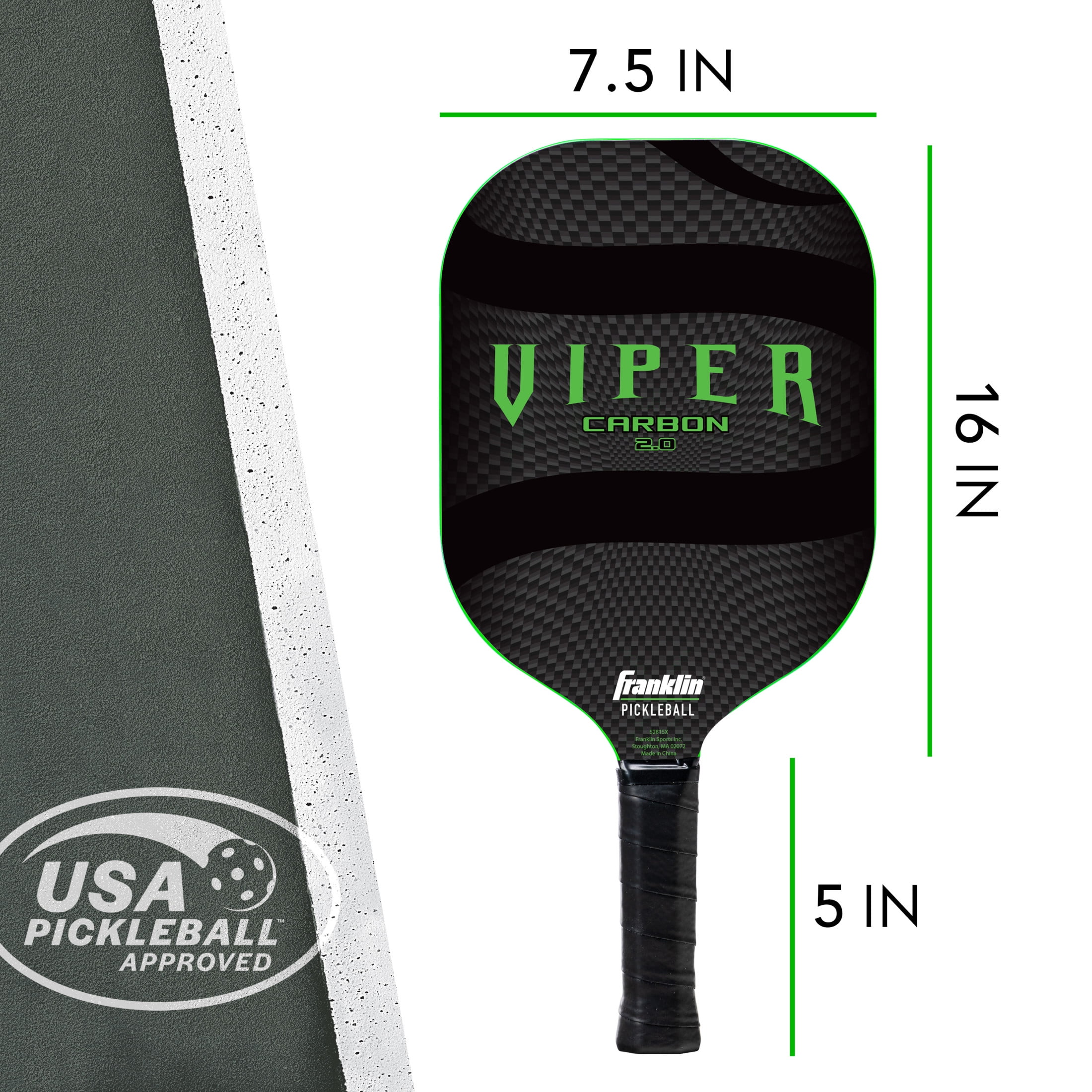 $103.19Original price was: $103.19.$30.75Current price is: $30.75.Franklin Sports is raising the bar for Pickleball paddles everywhere with the introduction of our all new Christine McGrath Pickleball Paddle. The premium quality paddle features our brand new MaxGrit™ textured surface technology designed for maximum spin and reduced vibration. The MaxGrit™ surface material is USAPA approved and is designed to provide greater traction on the surface of the ball to increase spin rate for optimal control. Additionally, the 13mm polypropylene core and carbon fiber surface layer ensure a strong, durable base with an oversized sweet spot for dependable, effortless contact shot after shot. This paddle is the new pinnacle of performance and is USAPA certified for competitive and tournament play. Elevate your game today. DIMENSIONS: PADDLE: 15.7″ X 7.8″ HANDLE LENGTH: 4.9″ WEIGHT: 7.5 – 7.8oz. CORE: 13mm Polypropylene