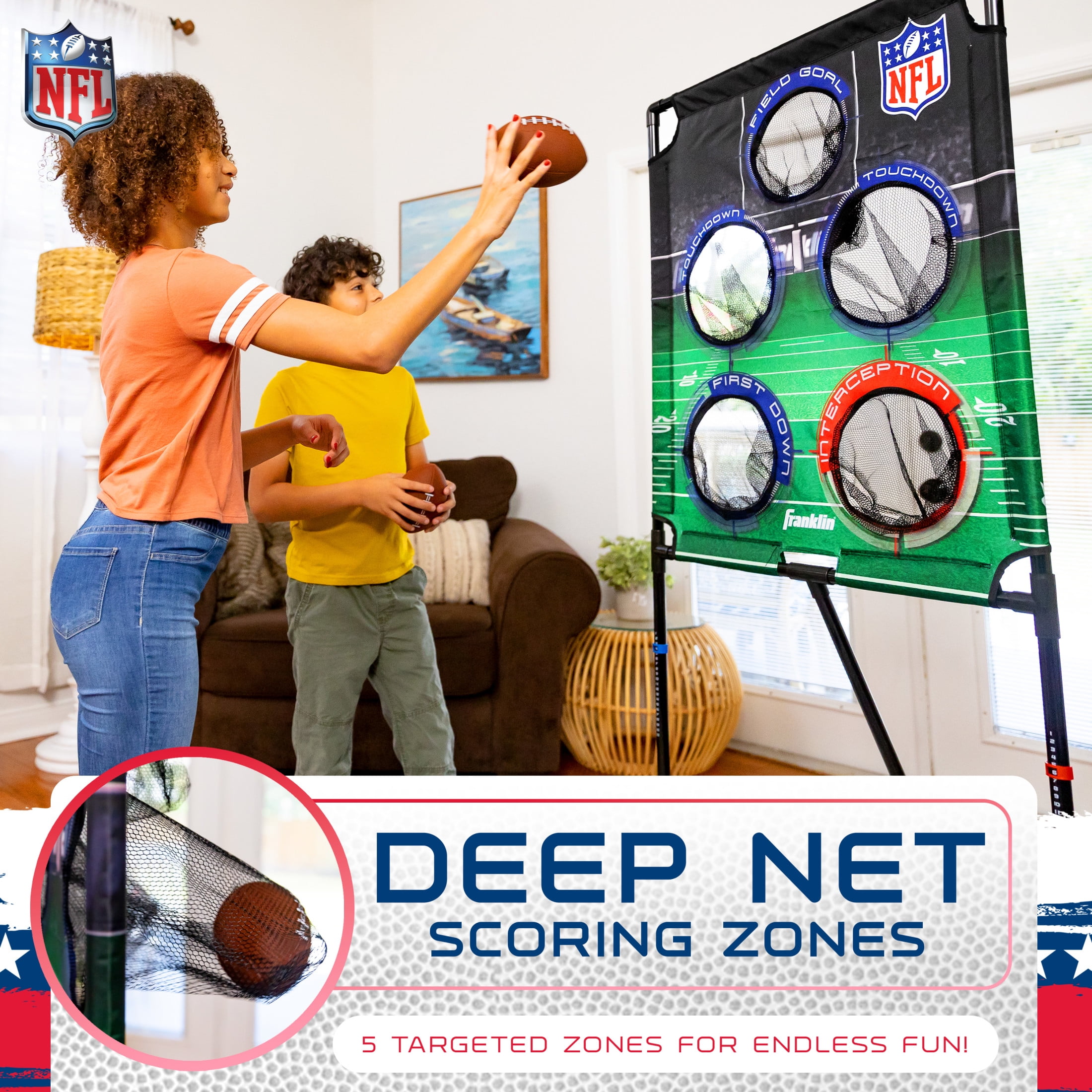 $81.69Original price was: $81.69.$62.08Current price is: $62.08.Take your position as quarterback and compete for the most points with the Franklin Sports NFL Deluxe Football Target! Split up into teams or play solo with a football target that mimics traditional football gameplay! Aim for the touchdown to score big, or bag a first down and get 4 more throws! The target features built-in 2-player scoring so that you can keep track of your points as you complete each pass! This 5-hole deluxe target is perfect for practicing your throws and taking your offensive skills to the next level! Split up into teams and compete against your friends and family! Aim for the most points to prove which team is the NFL Champion! Unisex game for adult and child!