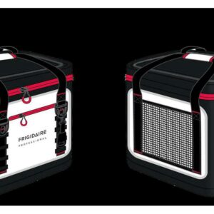 $82.04This Frigidaire Professional welded cooler is waterproof and offers high-performance ice retention. The leak-free main compartment is ideal for up to 12 beverage cans and the front zippered-pocket allows for added storage. Plus, it is easy to keep clean For easy transport, you cans choose between the comfortable wrap handle or the adjustable shoulder strap.