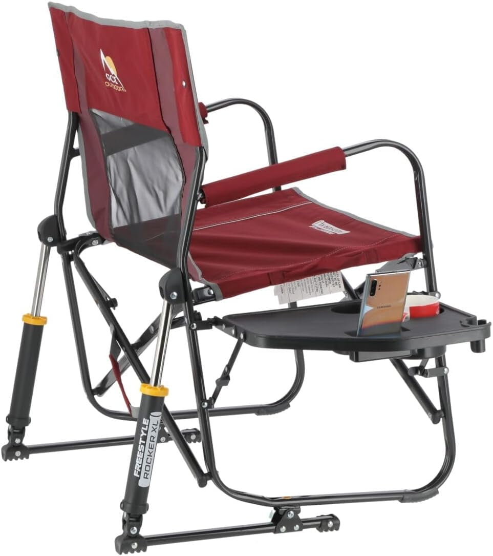 Freestyle Rocker XL with Side Table Camping Chair | Portable Folding Rocking Chair with Solid, Durable Armrests, Drink Holder & Comfortable Backrest — Red