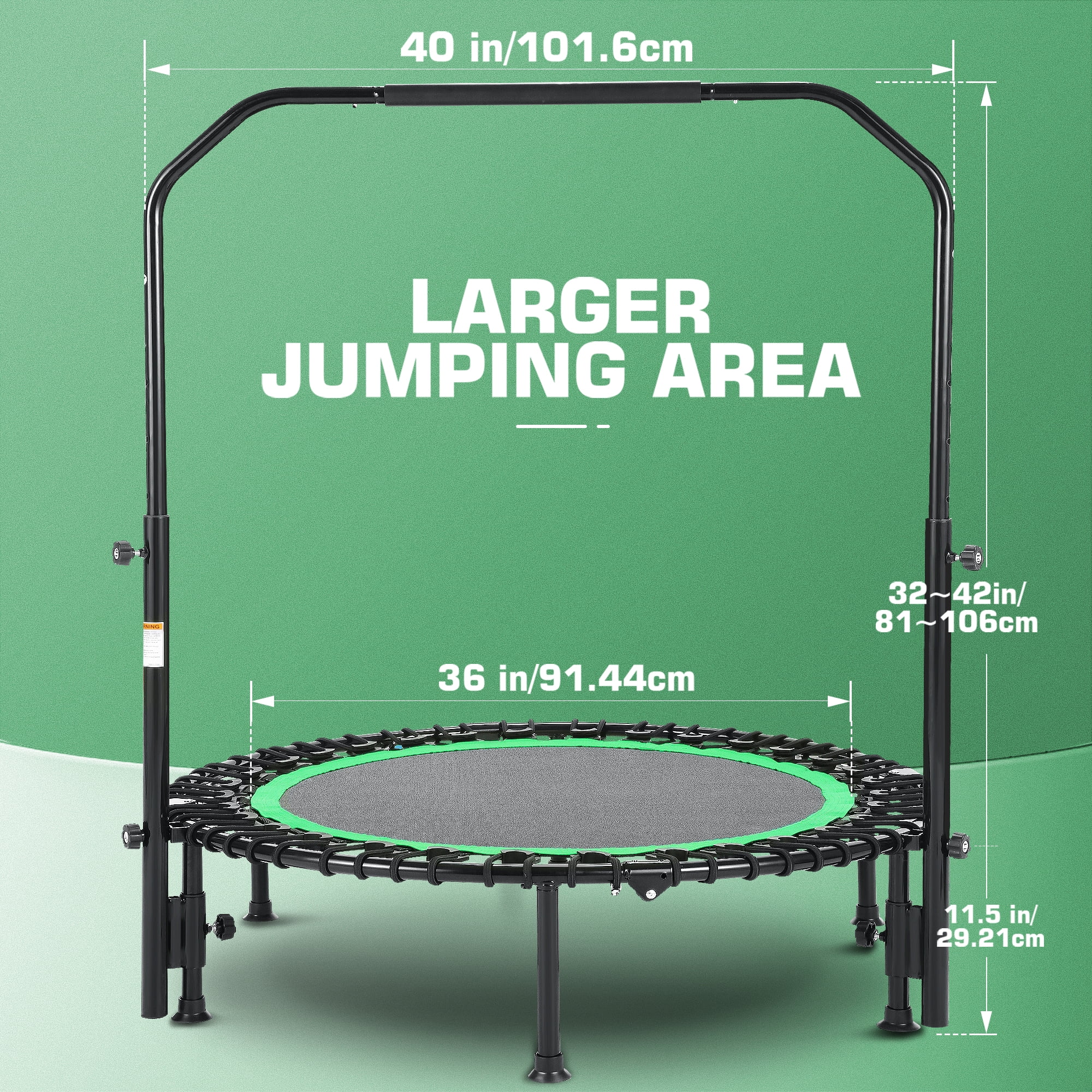 FUNMILY 40″ Foldable Mini Trampoline with Bungees, Fitness Trampoline Workout Max Load 450lbs, Adjustable Foam Handle, Indoor Exercise Trampoline, Green