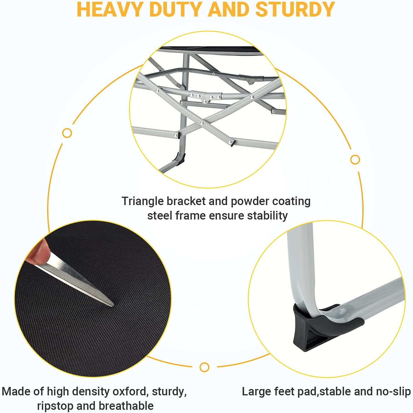 FUNDANGO Oversized Rocking Camping Chair for Adults Outdoor Folding Rocking Chair Lawn Chair Black